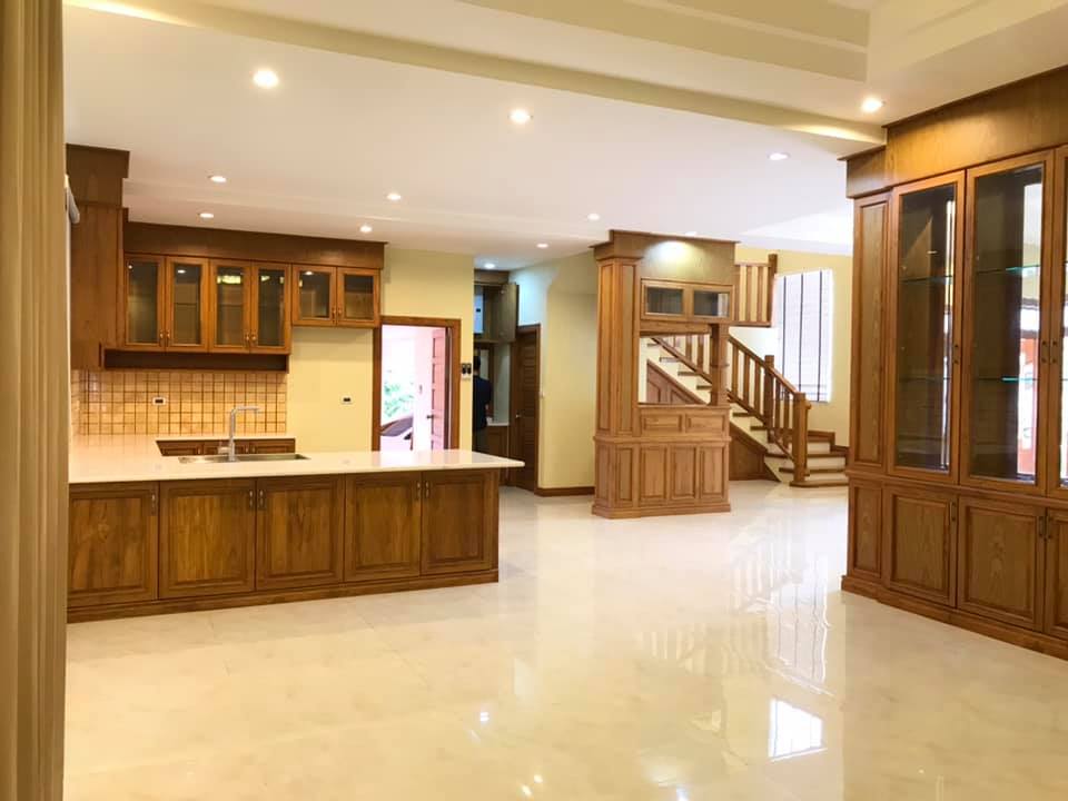 5 bedrooms, 6 bathrooms, 1 living room, 1 dining room, modern open kitchen, kitchen island. cabinets, full furniture, wooden floor, hot water, shower/ bathtub, electronic appliance, small garden, safety fence, gate, car parking 3 cars.