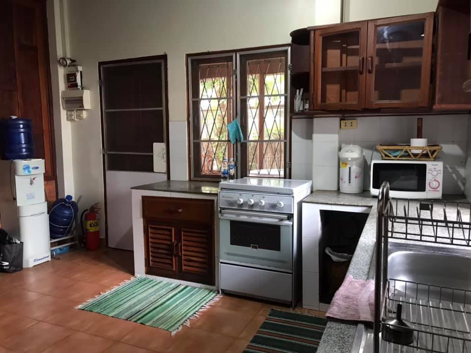 3 bedrooms, 4 bathrooms, 1 living room, 1 working area, terrace, dining area, 1 kitchen, with the furnitures, nice decoration, woodem floor, AC, hot water system, shower, wire bar windows, car parking spaces, nice garden and the shade, wall, gate.