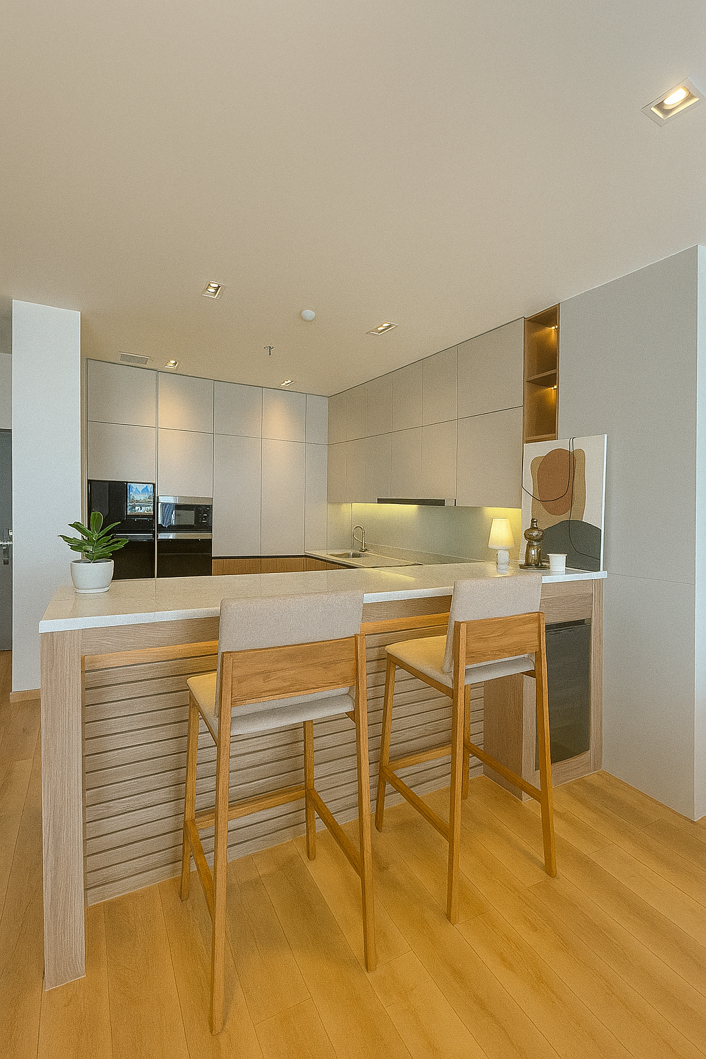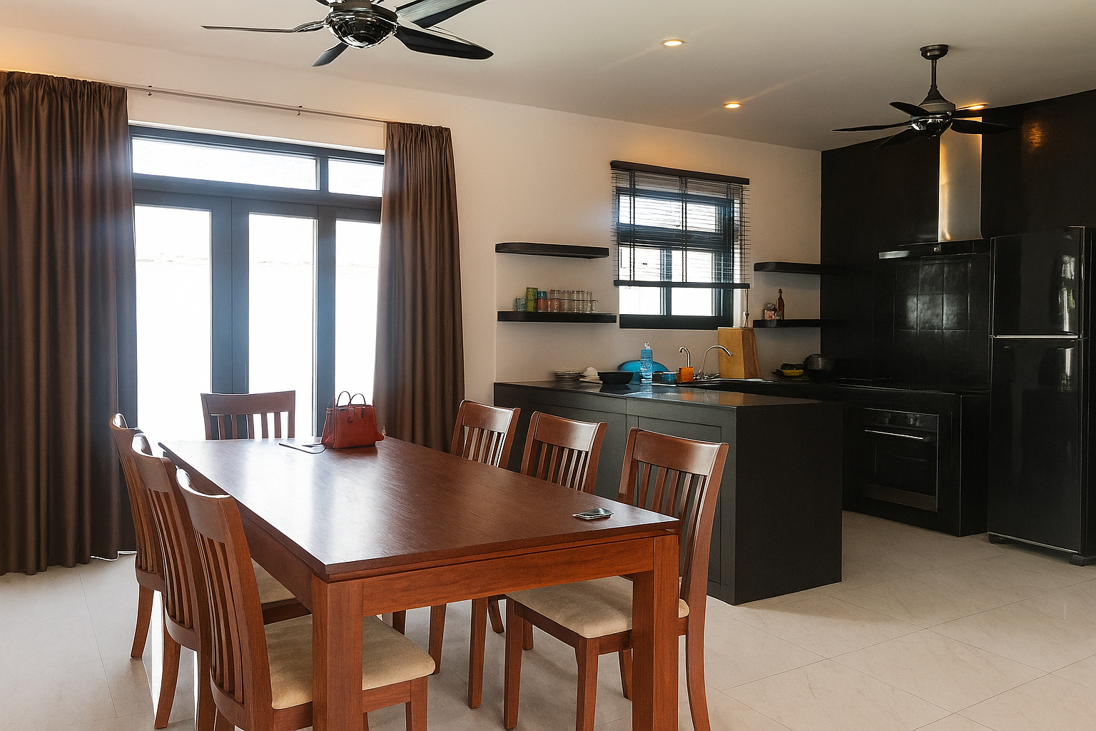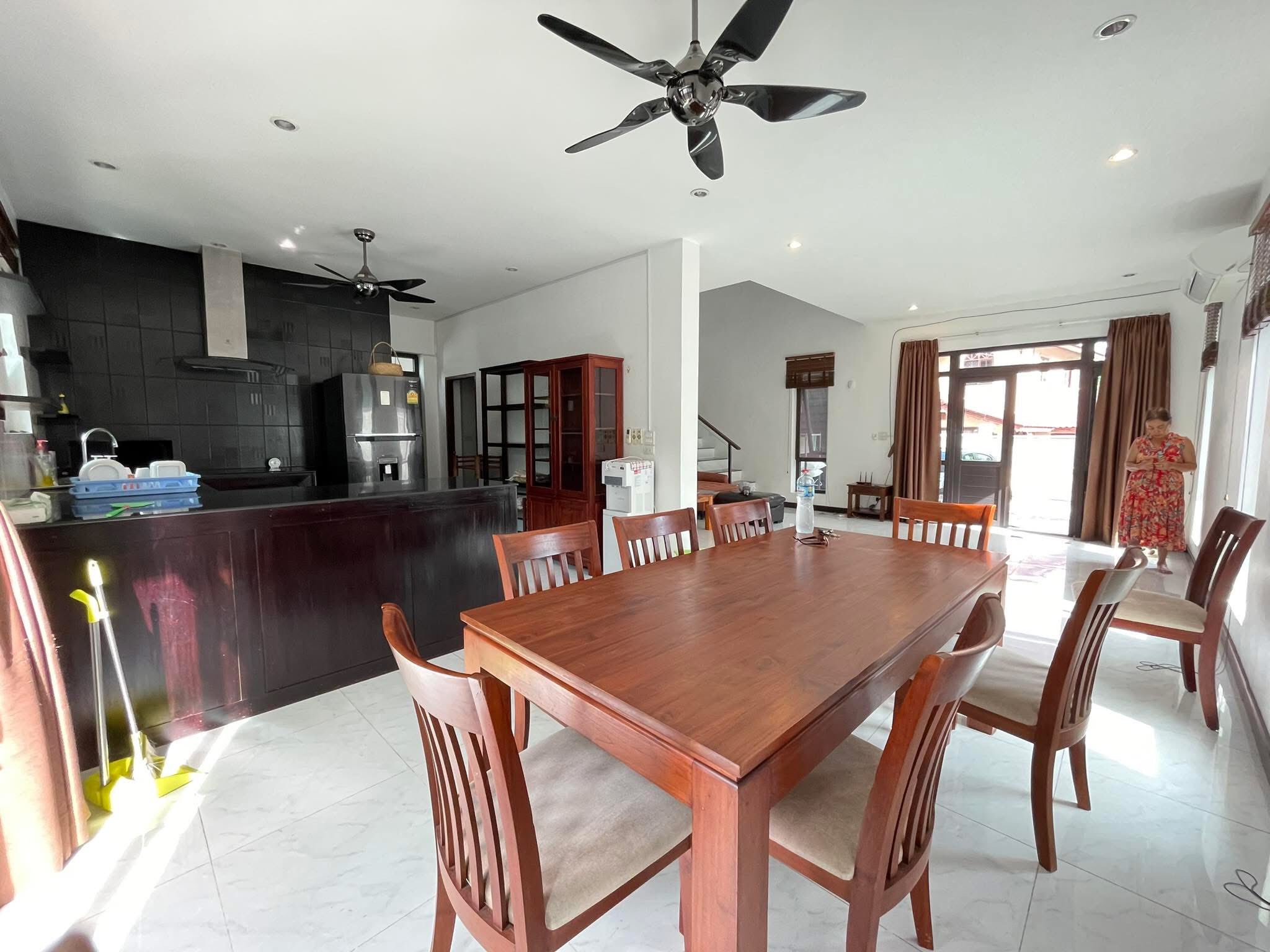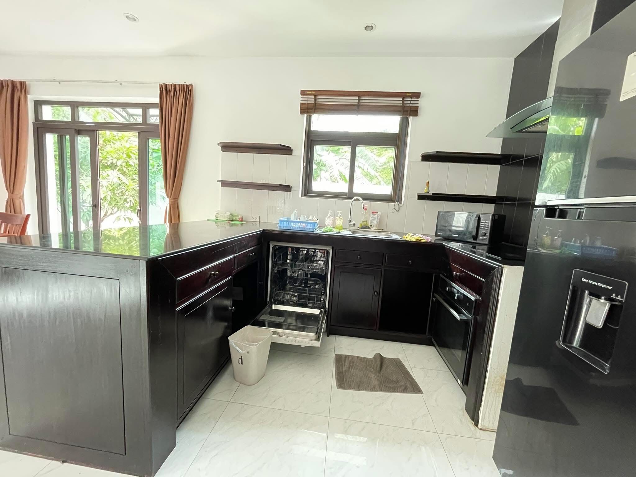 3 bedrooms, 4 bathrooms, 1 living room, dining area, open modern kitchen, dishes washer machine, electric oven, gas cooker, with the furnitures, nice decoration, hot water boiler, shower, washing area, Pantry room, tile floor, High ceiling, Safety wall, electronic gate, small garden, good access road
