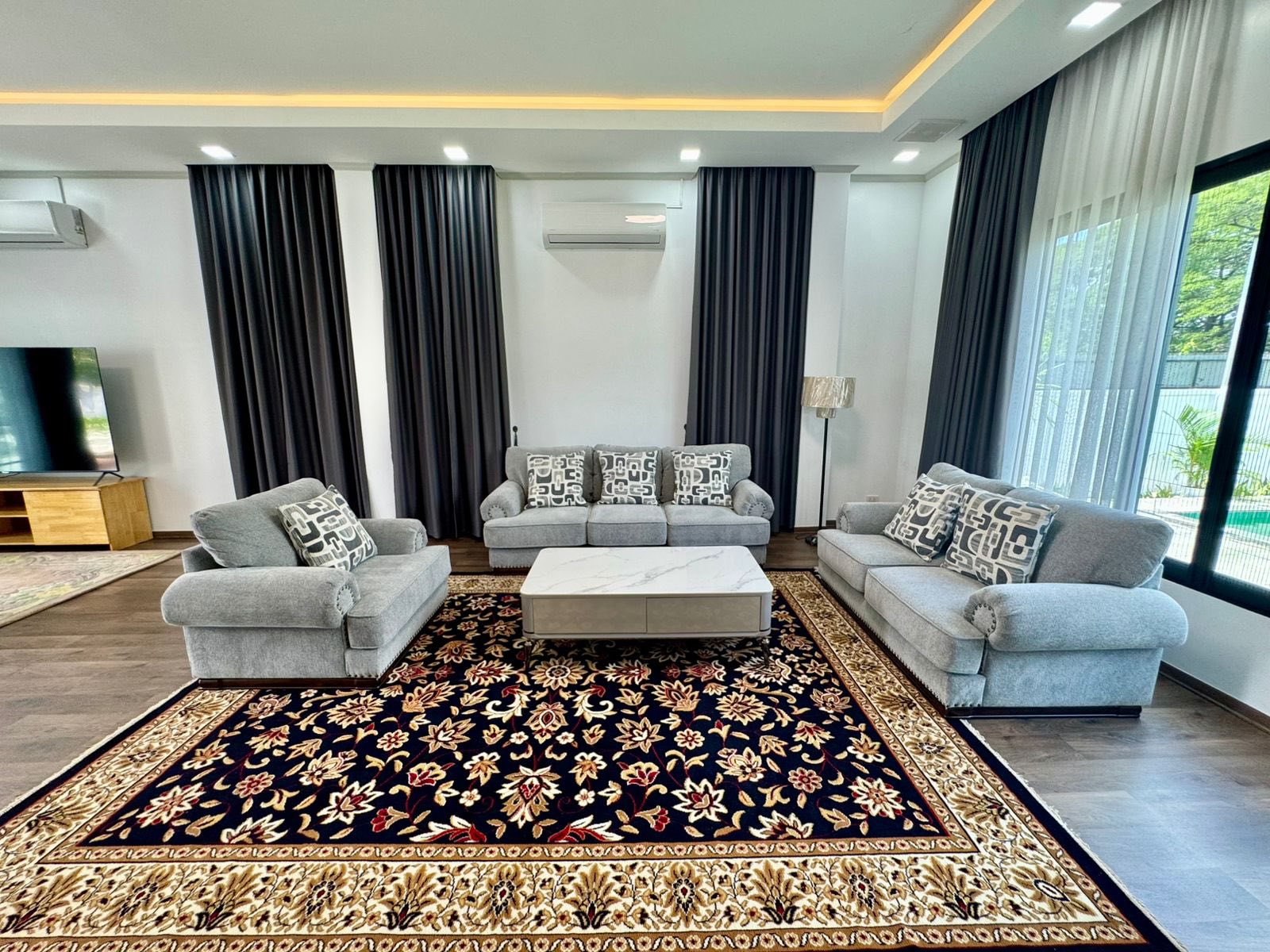 - Address: Luxury modern house with the furniture, nice decoration with modern interior design, spacious, bright, swimming pool, large car parking lots, near Korean embassy.