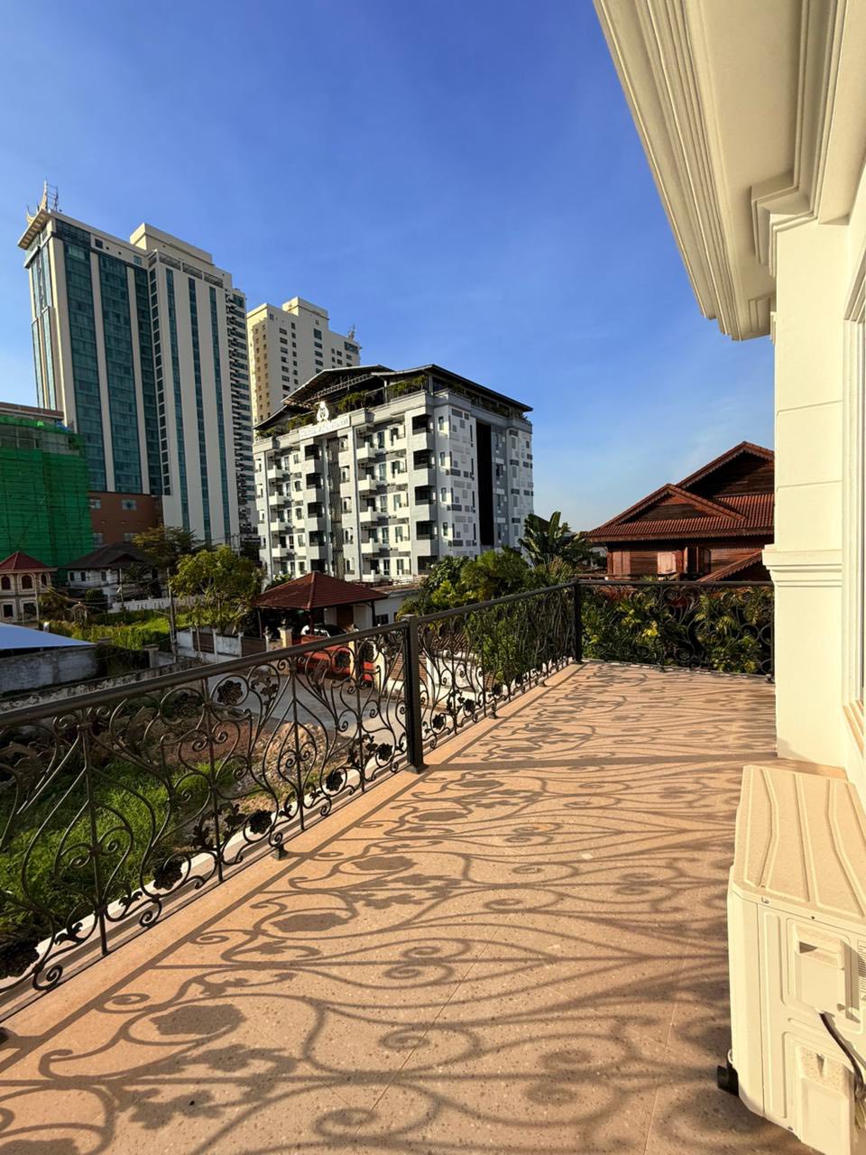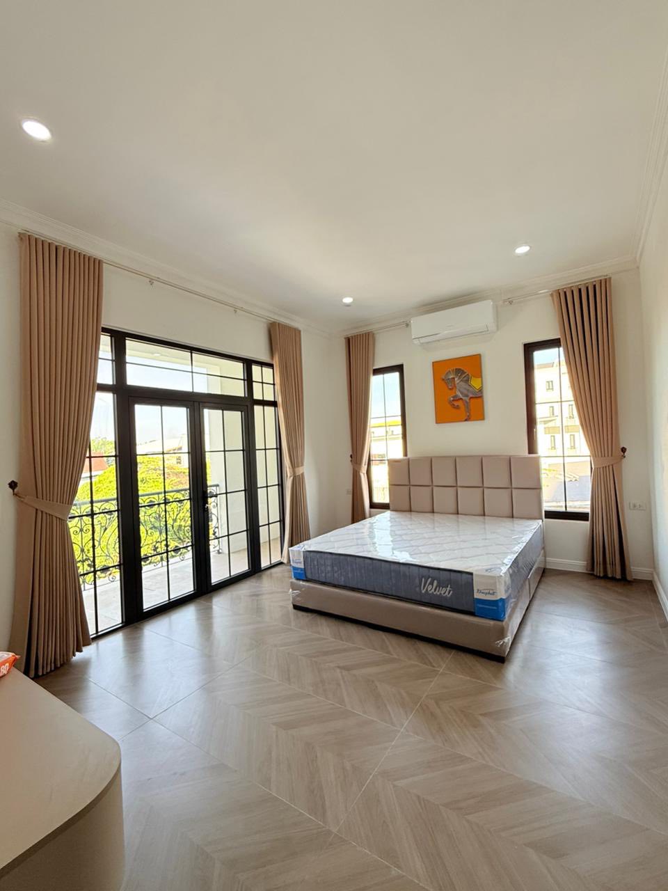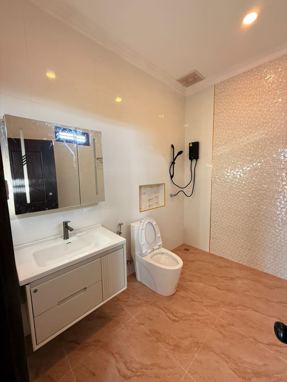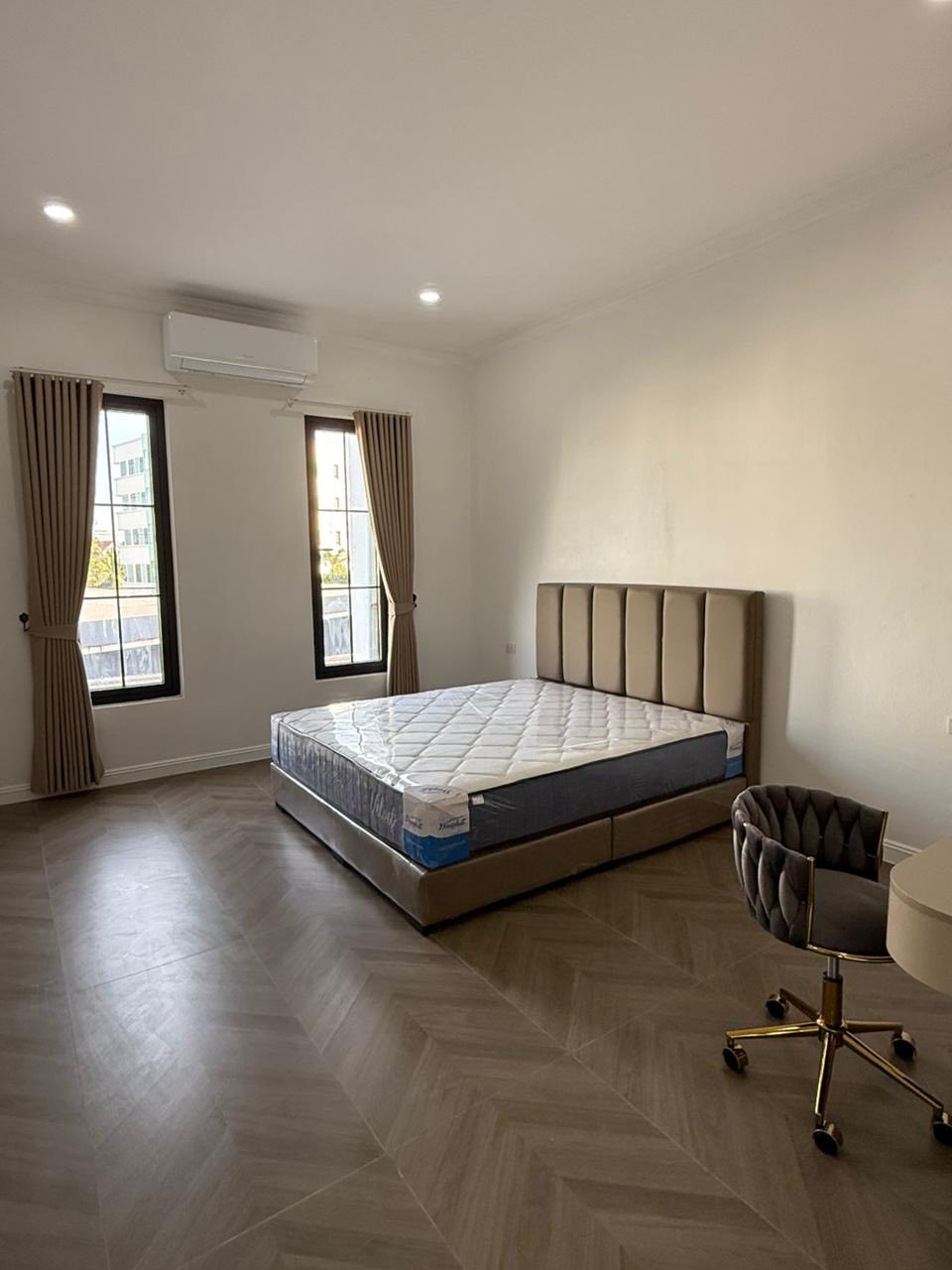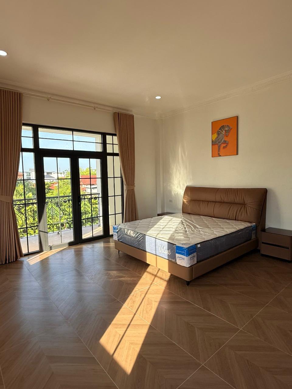 5 bedrooms, 6 bathrooms, living room, kitchen, tile/wooden floor, full furniture, outside toilet, guard house, car parking, fence, Remote gate, Concrete road