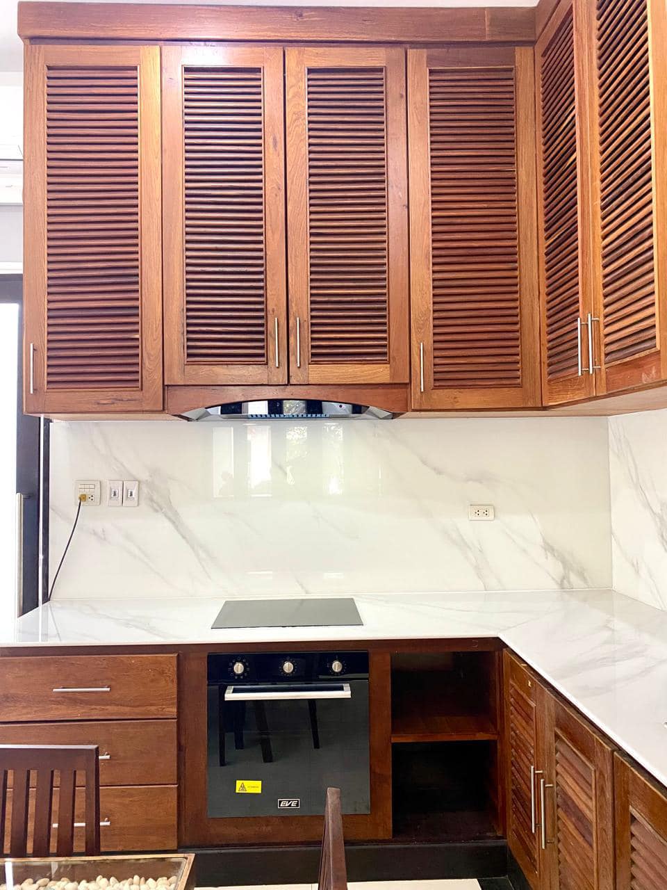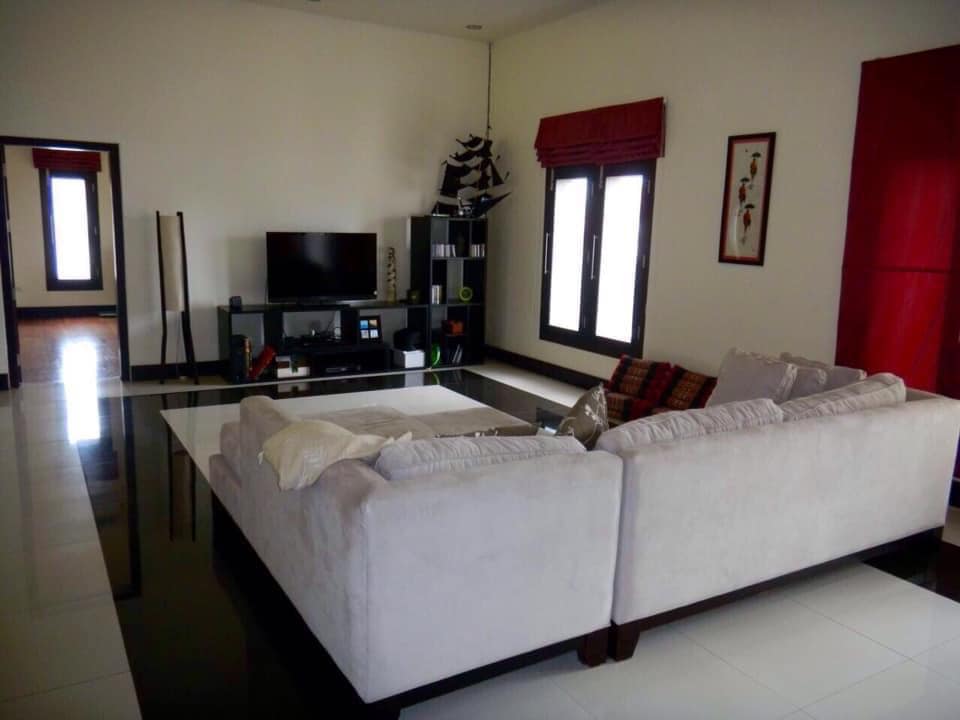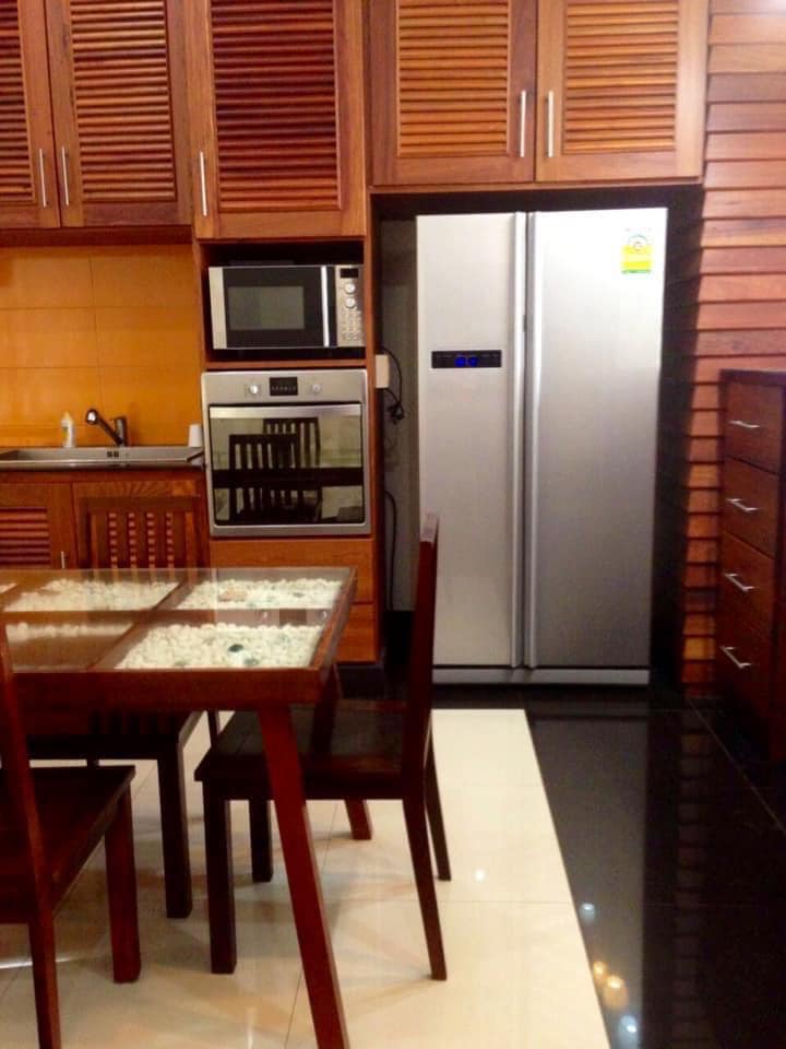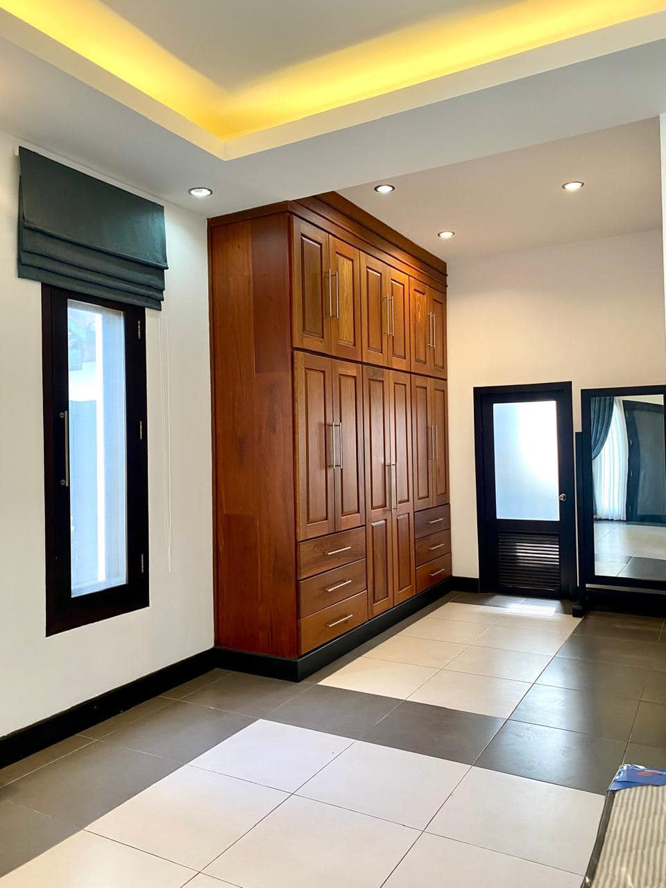 - 4 bedrooms, 5 bathrooms, 1 working room, 1 living room, 1 family room, 1 dining room, 1 western kitchen, 1 outside kitchen, 1 storage room, 1 outside toilet, 1 maid room, full furniture, nice decoration house, electronic appliance, AC for all rooms, hot water, shower/ bathtub, tile floor, high ceiling, car parking spaces, gate, fence