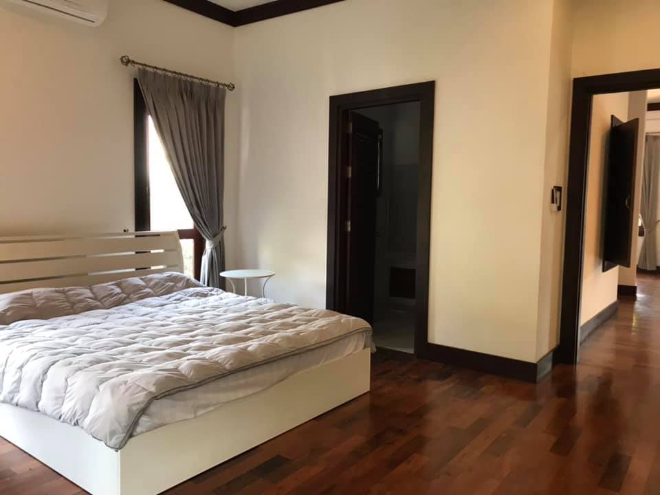 3 bedrooms, 4 bathrooms, 1 large living room, 1 dining room, 1 kitchen, washing area, with the furnitures, air conditioners for all rooms, nice decoration, counter bar, modern kitchen, electronic oven, electric appliance, wooden floor, private gate, wall, garden, car parking spaces.