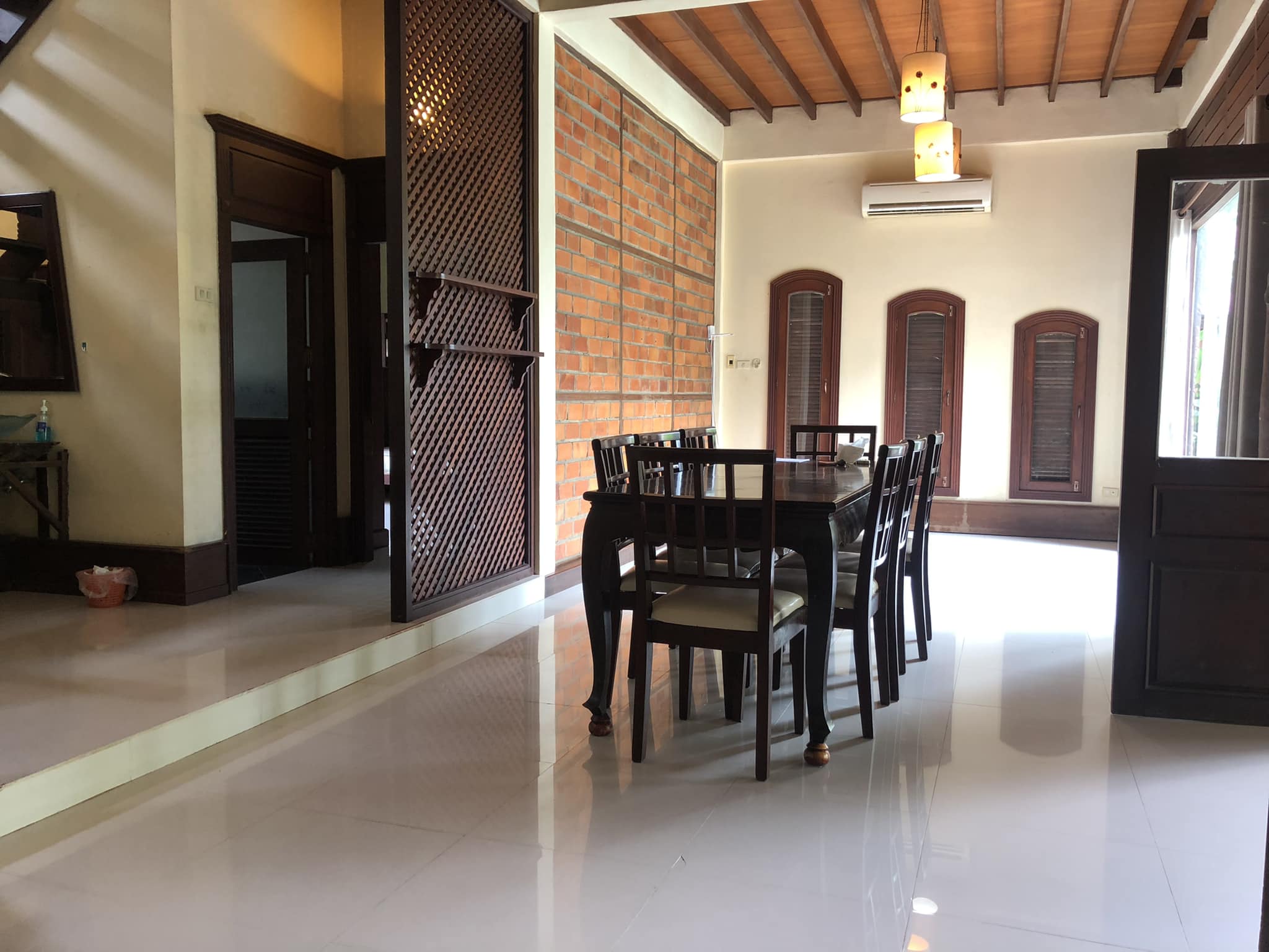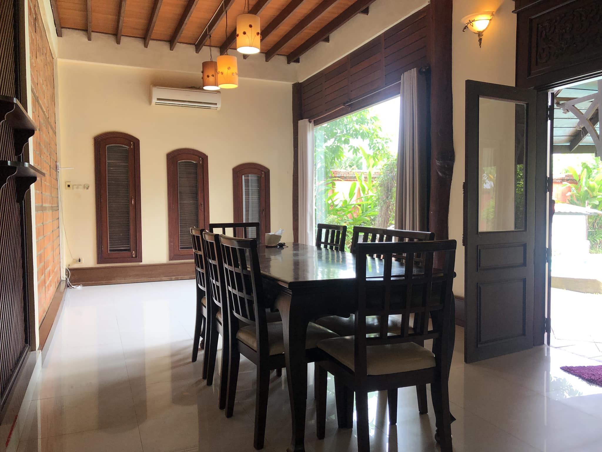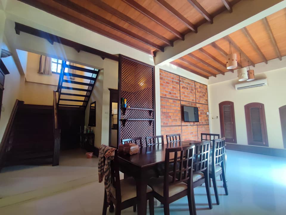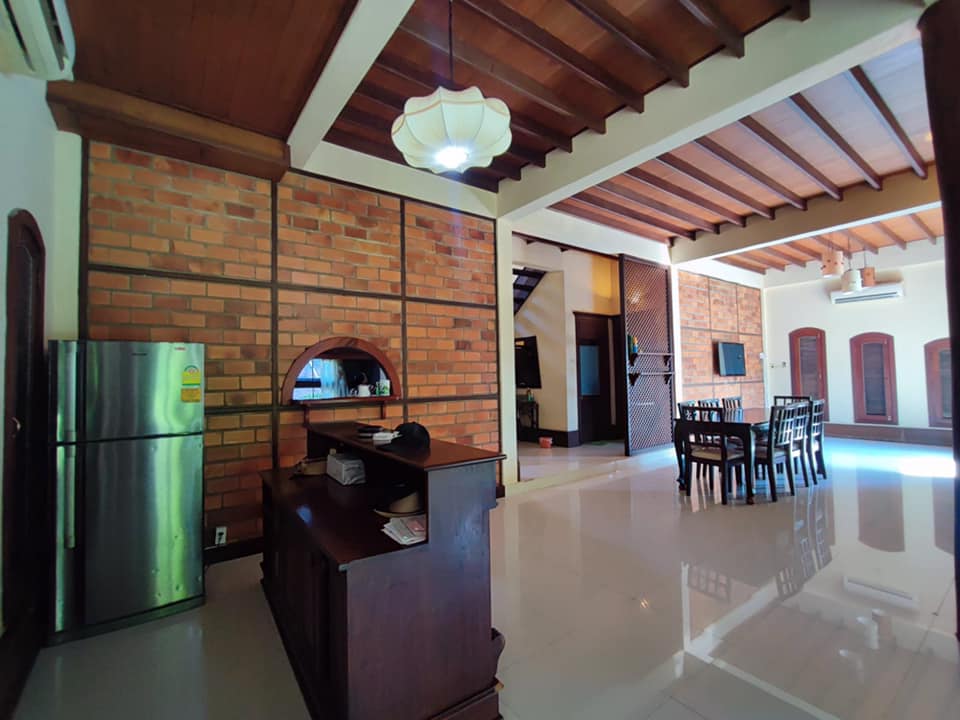 - 4 bedrooms, 4 bathrooms, bathtub/ shower, 1 living room, 1 dining room, 1 modern kitchen, gas cooker, electric oven, 1 washing room, 1 outside toilet, storage room, AC for all the rooms, with the furnitures, wooden floor, terrace, 5 cars parking, garden, wooden fence, gate, swimming pool