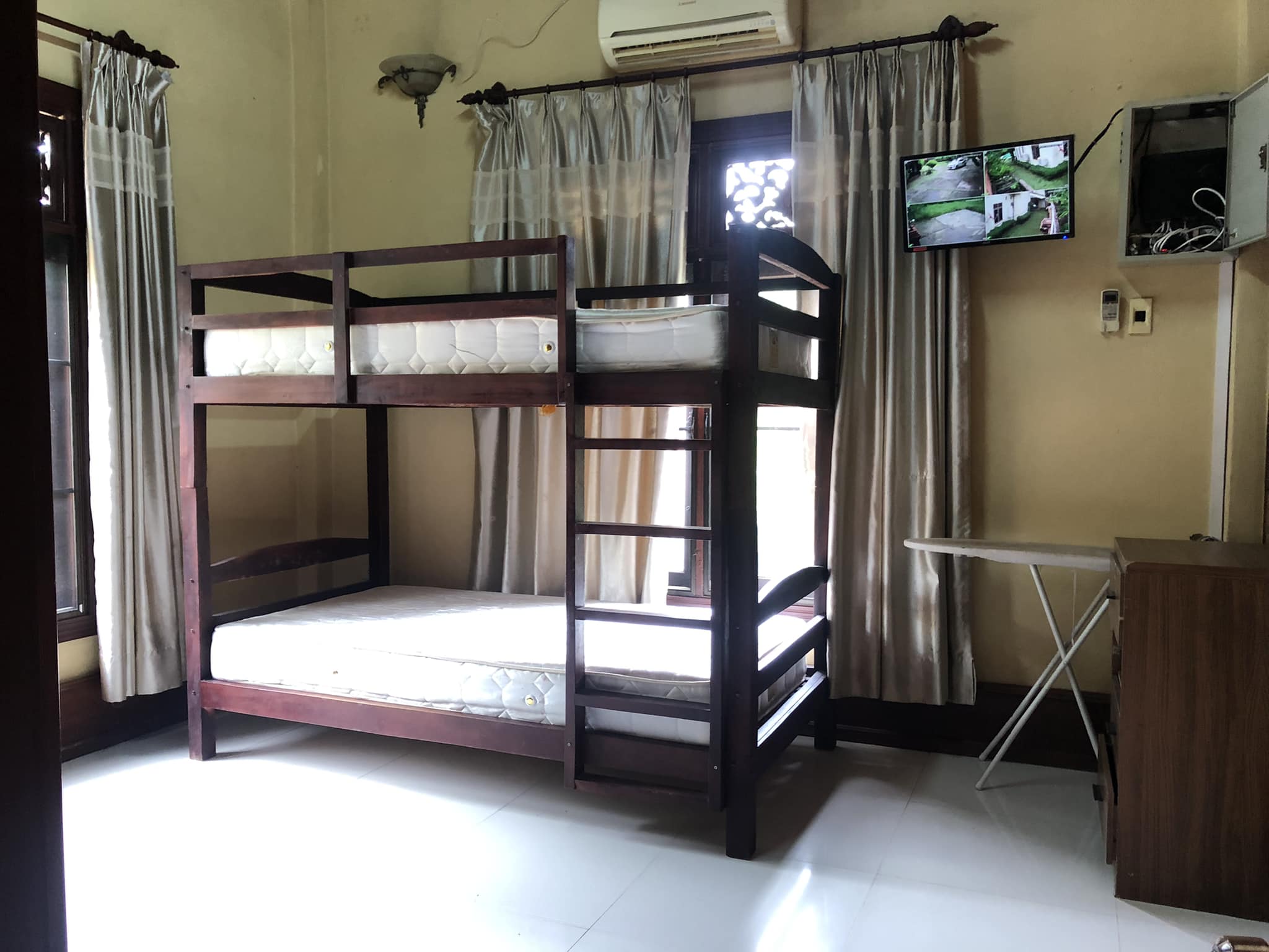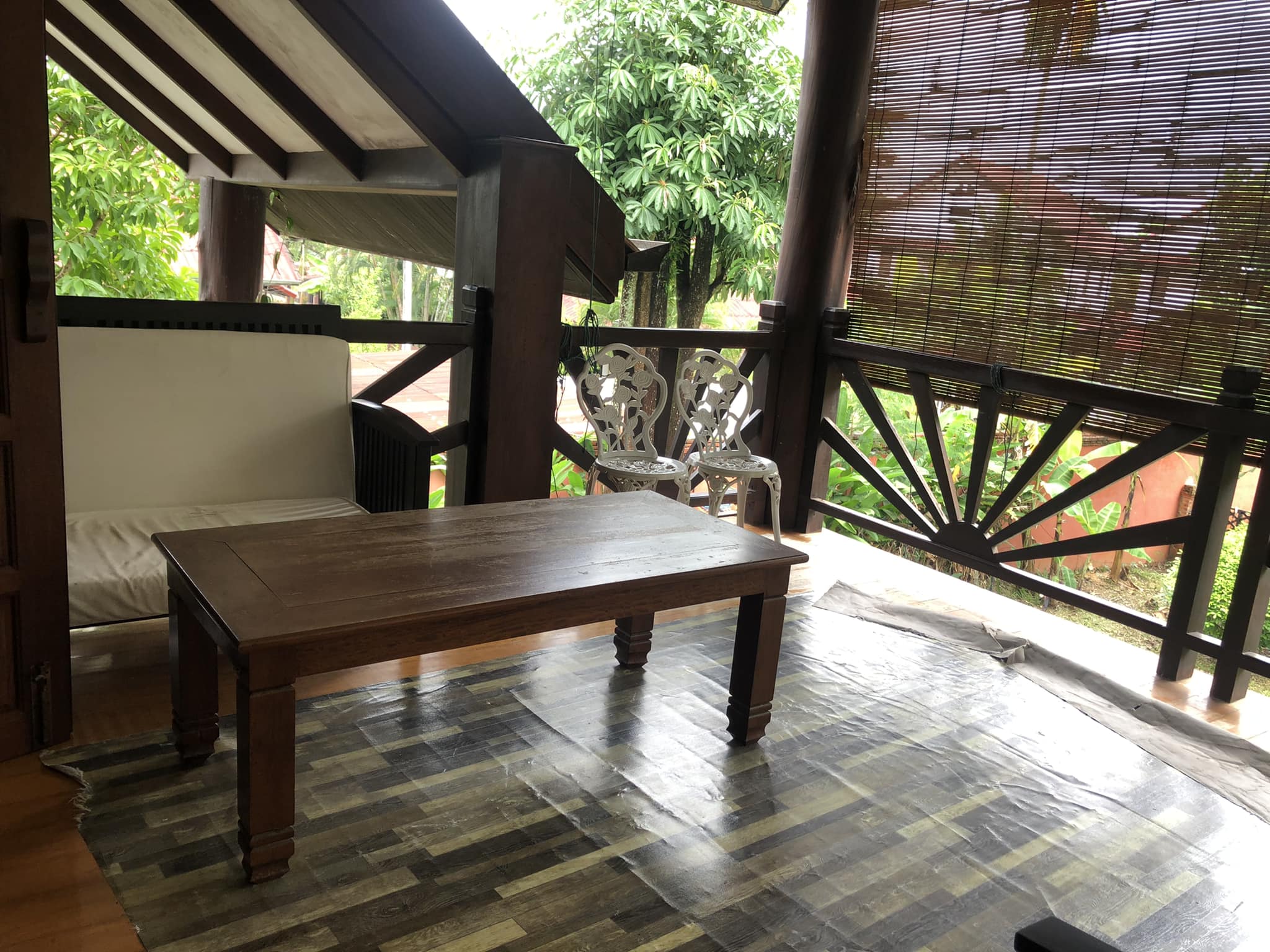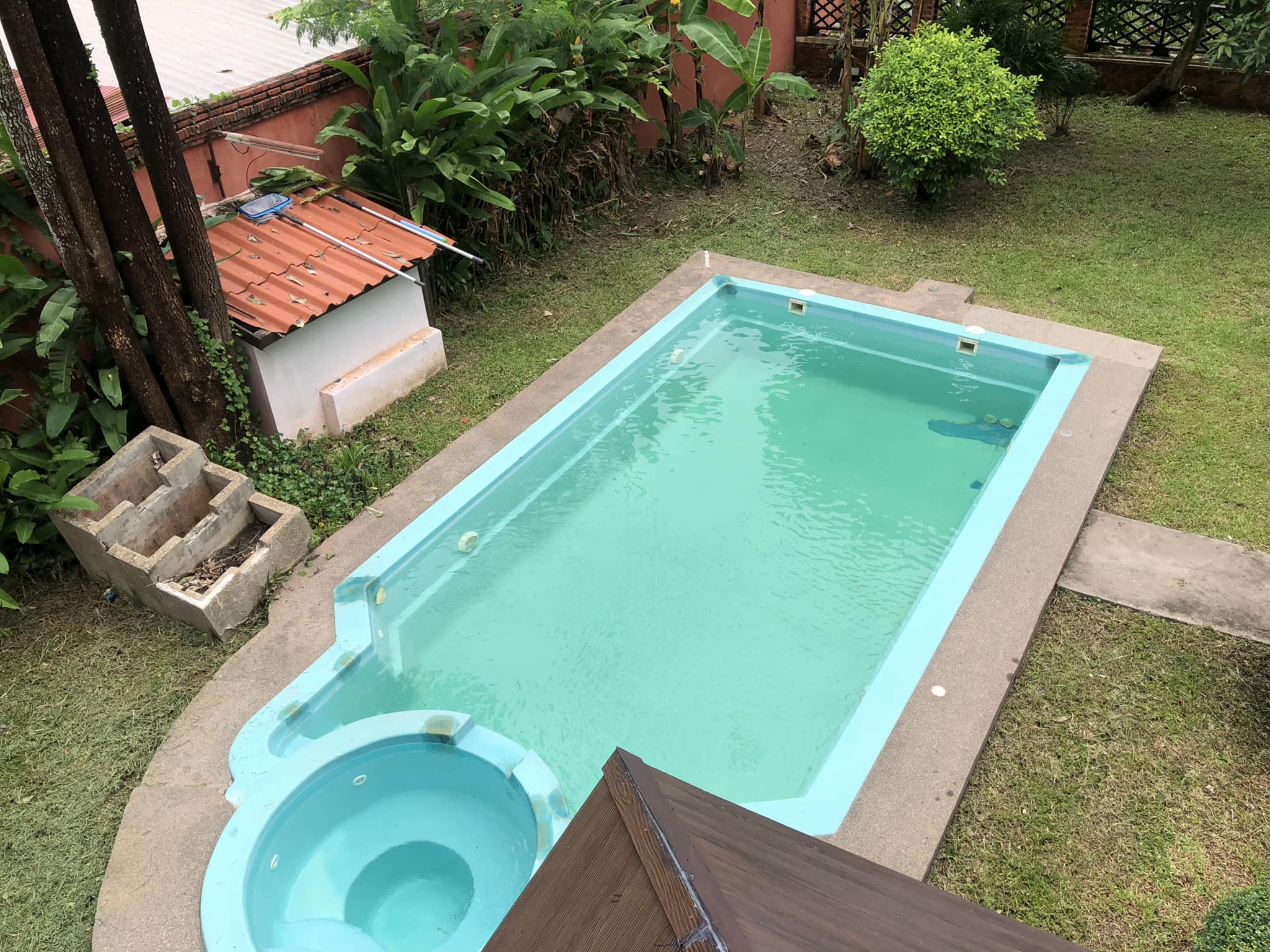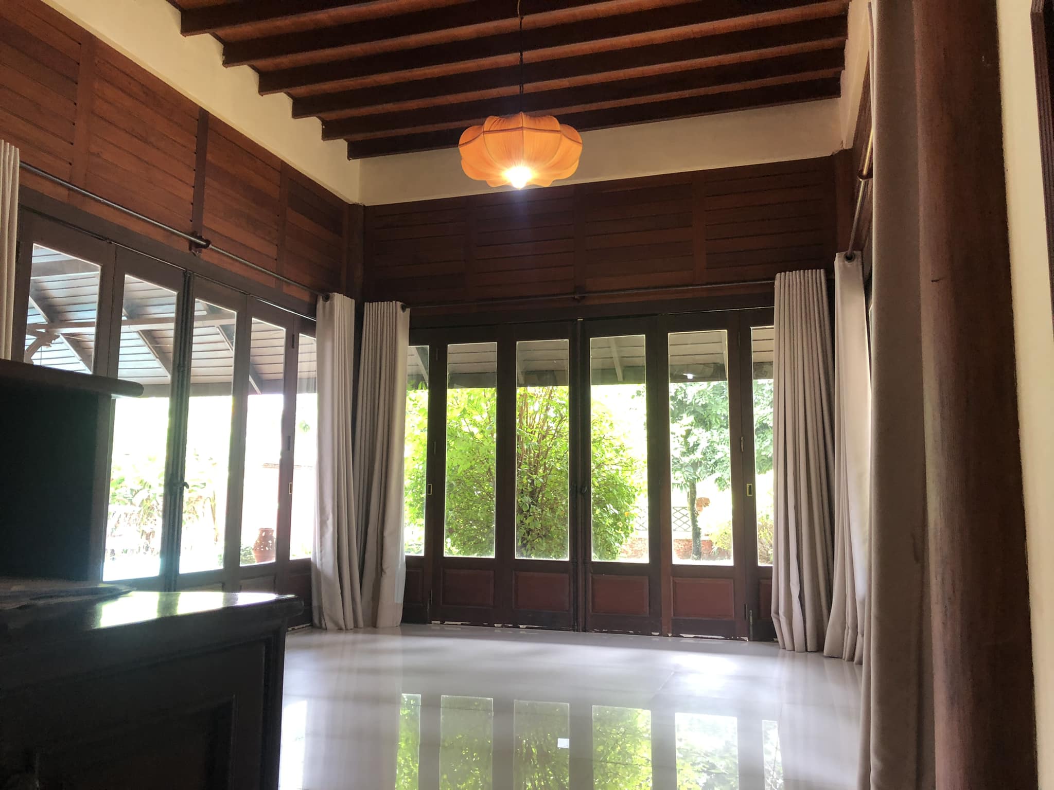 - 4 bedrooms, 4 bathrooms, bathtub/ shower, 1 living room, 1 dining room, 1 modern kitchen, gas cooker, electric oven, 1 washing room, 1 outside toilet, storage room, AC for all the rooms, with the furnitures, wooden floor, terrace, 5 cars parking, garden, wooden fence, gate, swimming pool