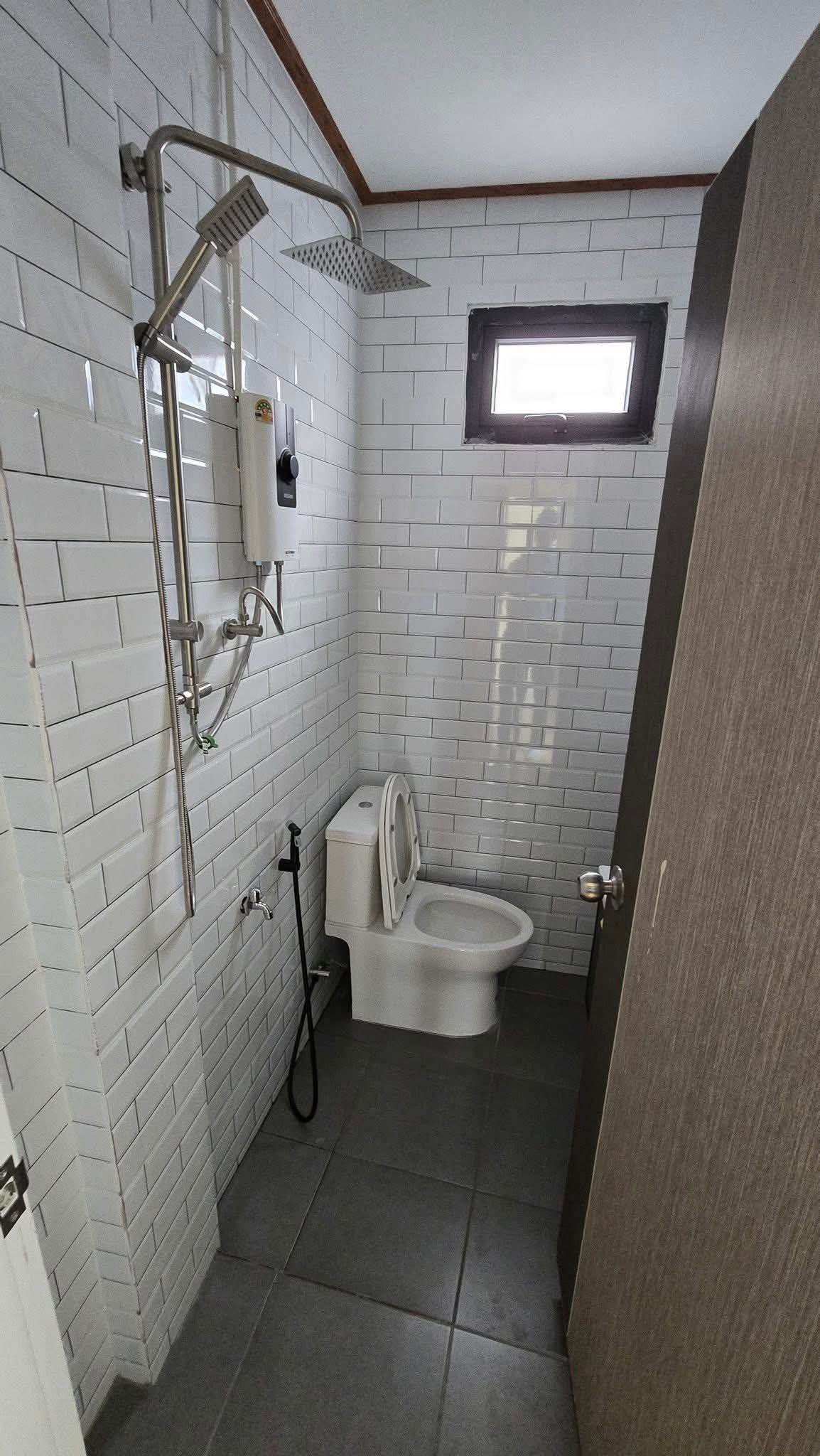- 2 bedrooms, 2 bathroom, living room, dining area, open kitchen, cooker hood, gas cooker, electric appliance, washing area, title floor, electric appliance, hot water boiler. No yard.