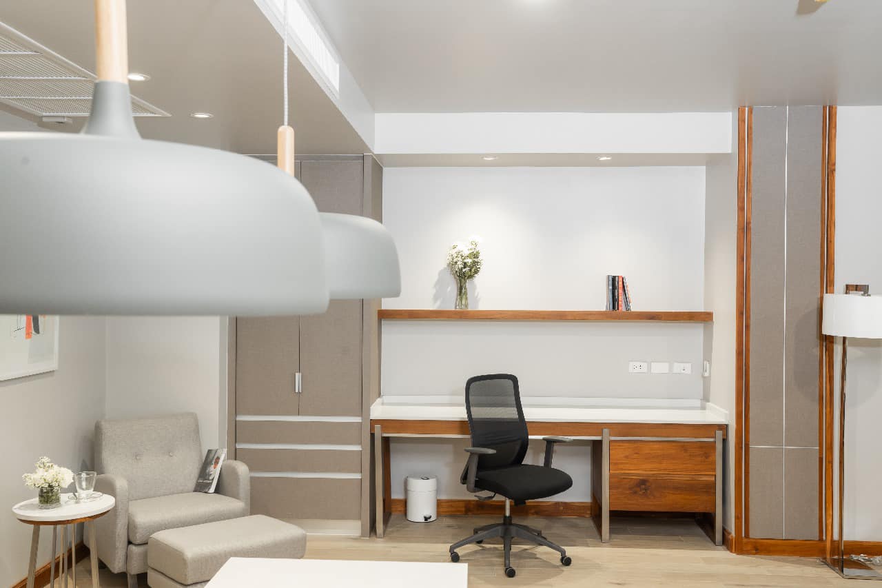 • Swimming Pool - Gym with functional training equipment - Sauna - Poolside cafe - Meditation Room - Banquet Hall - Co-working spaces - Parking - 24 hr security and conceirge - Cleaning 3 times a week - In-house laundry.