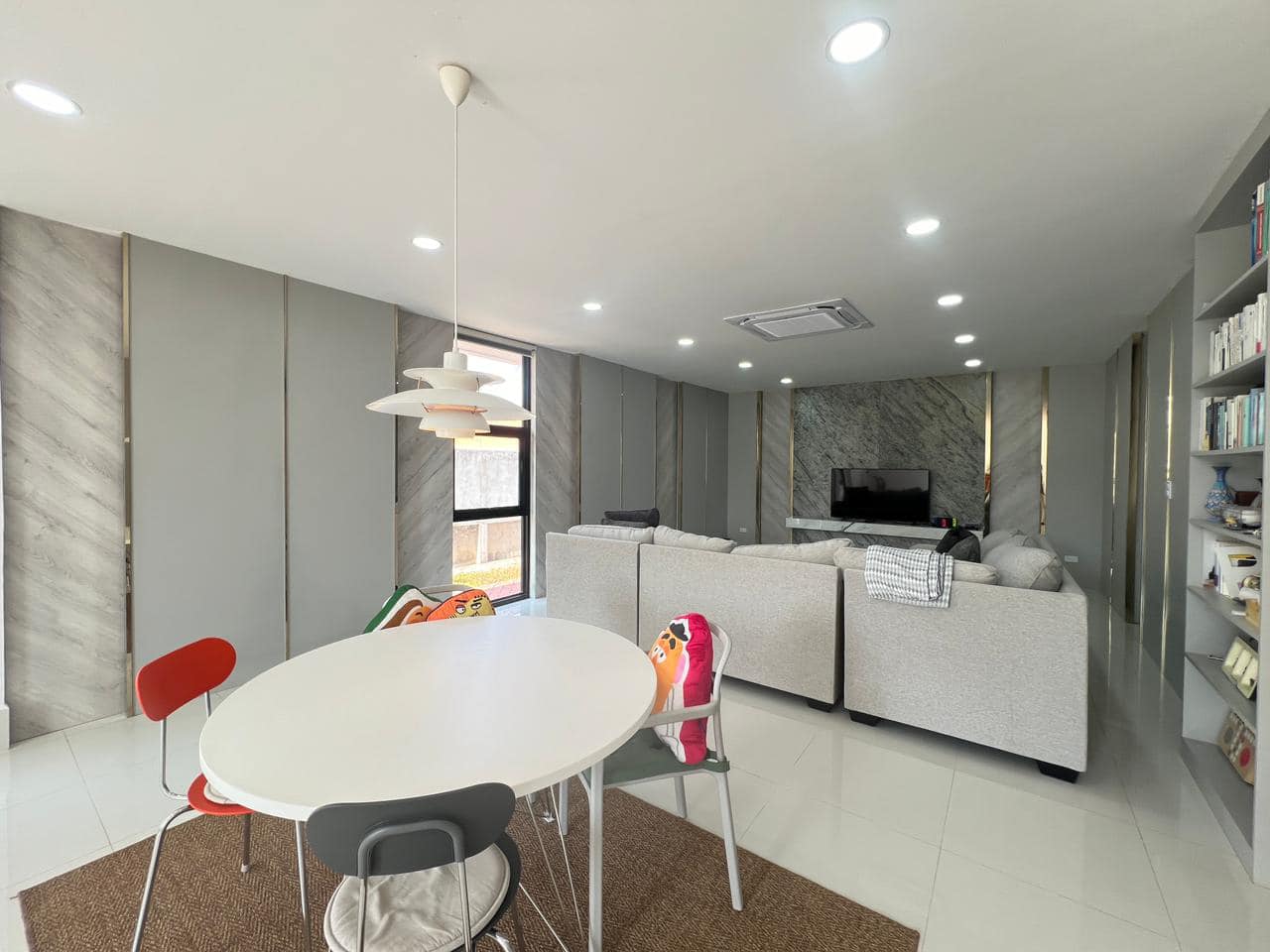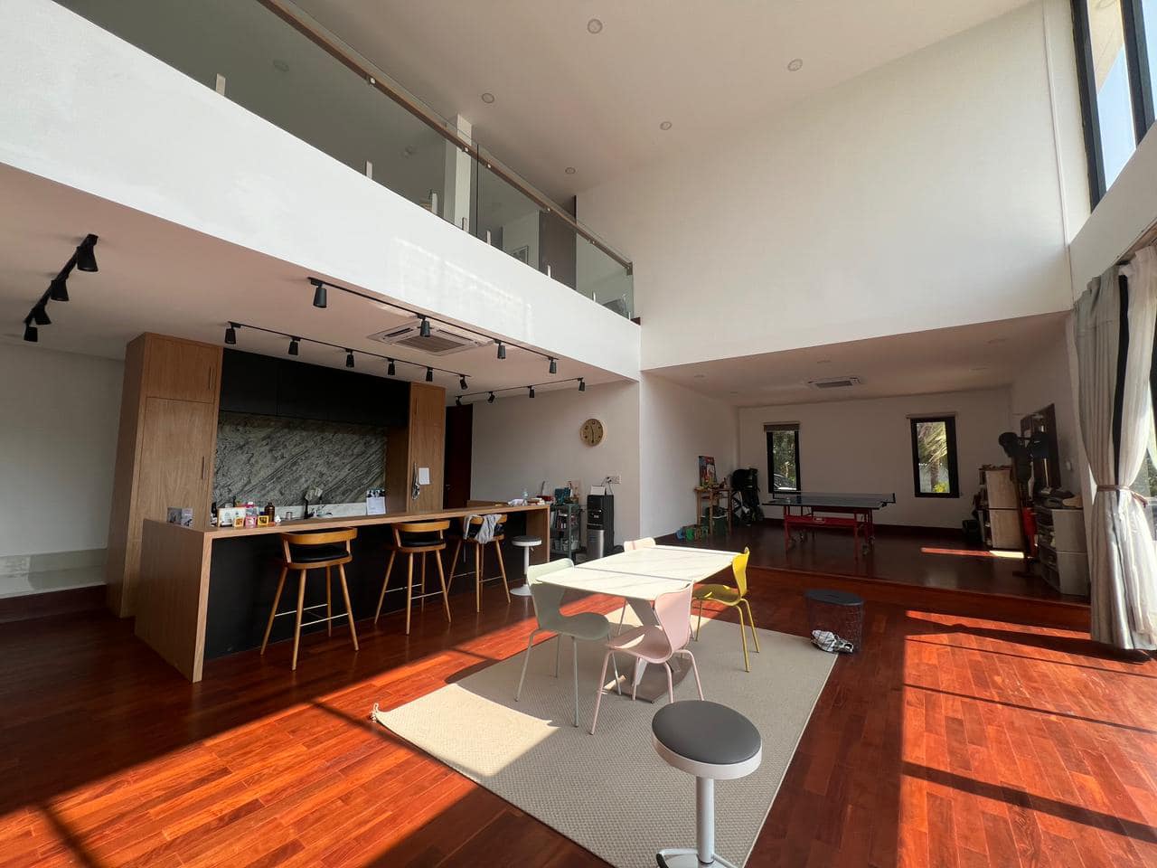 4 bedrooms, 5 bathrooms, 1 large living room, 1 living room, 1 family room in the second floor, TV room, counter bar in the dining room, 1 kitchen, 1 washing room, electric cooker, cooker hood, electric oven, hot water system, shower, high ceiling, hot water system, jacuzzi bathtub/ shower, big glass windows, tile floor, electric appliance, cars parking spacious, nice yard, fence, gate.