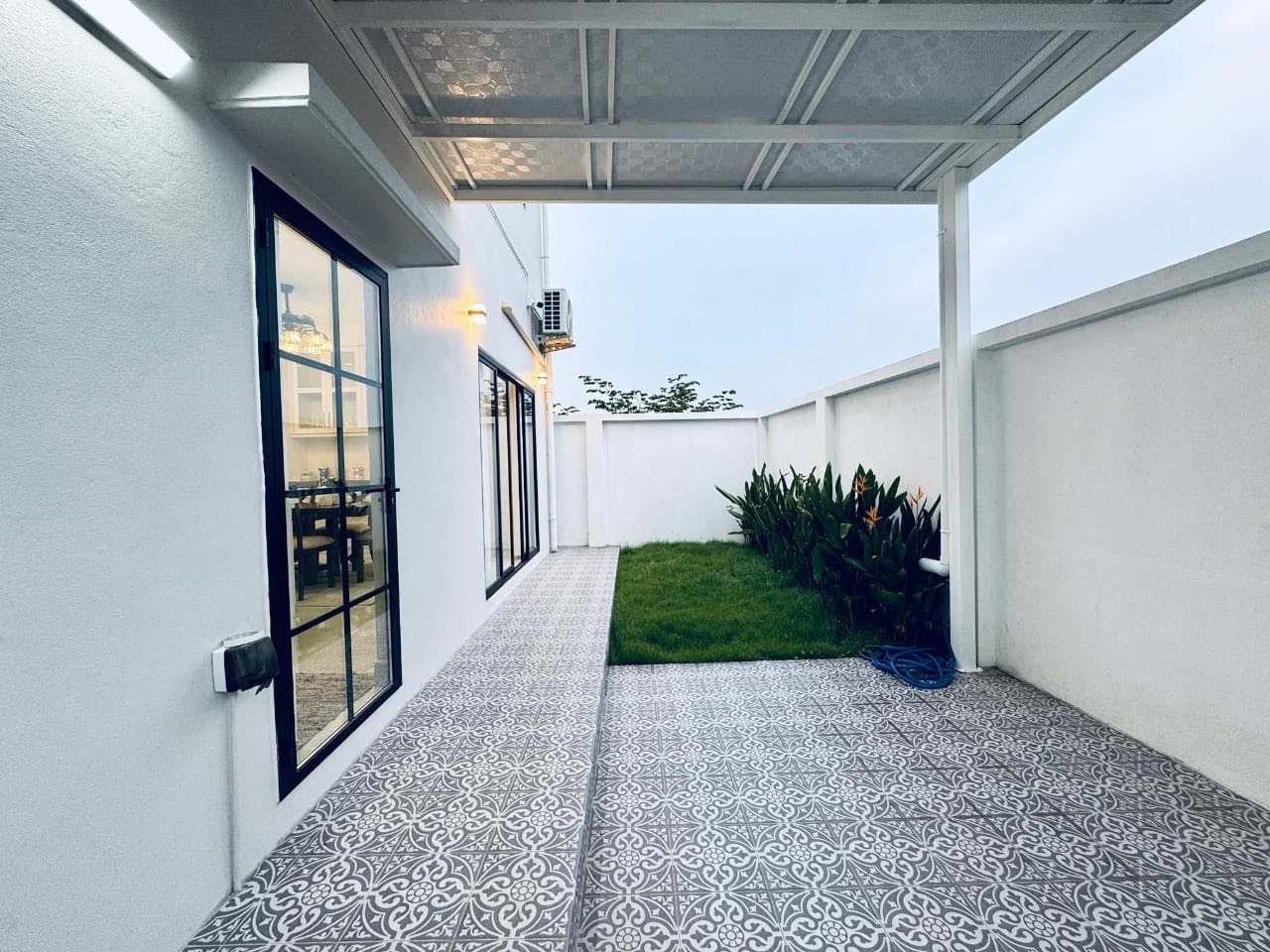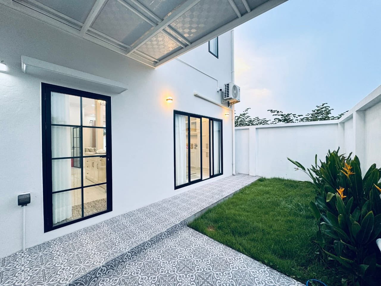 Stylish and newly built modern twin houses featuring 3 bedrooms, 3 bathrooms, a bright open living and dining area, and beautifully decorated interiors with English-style modern finishes. Each unit is fully furnished with electric appliances, tile floors, car parking, a nice yard, and secure fencing with gate.