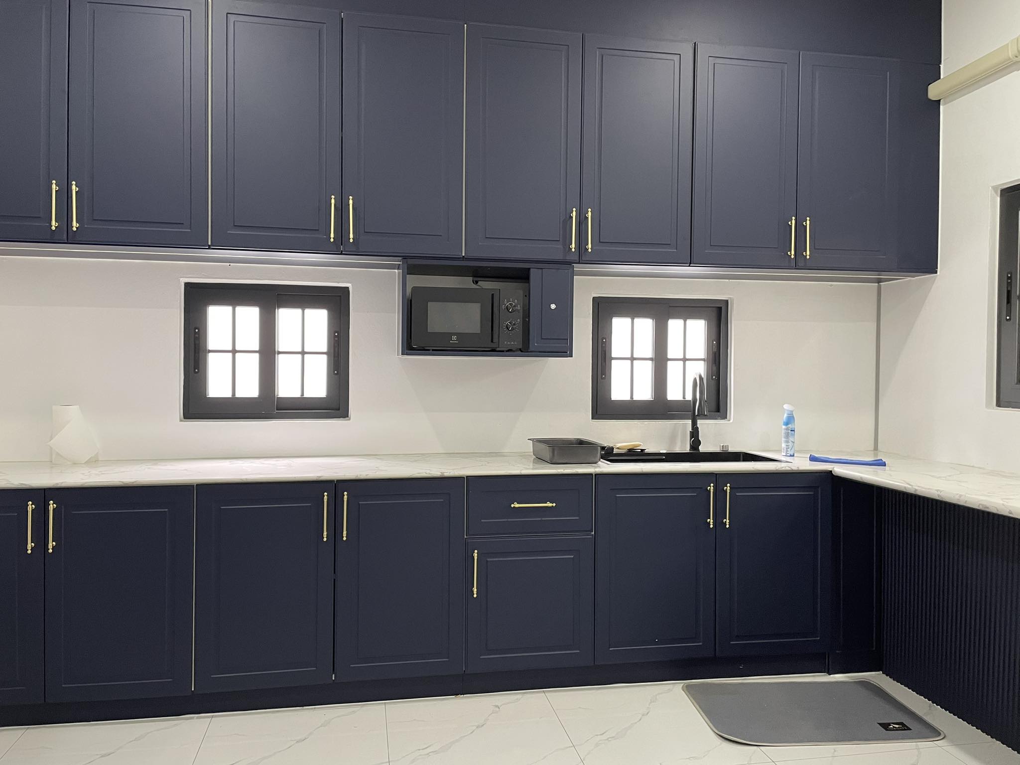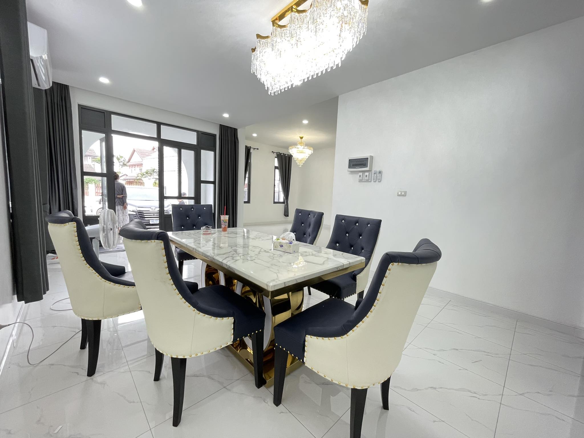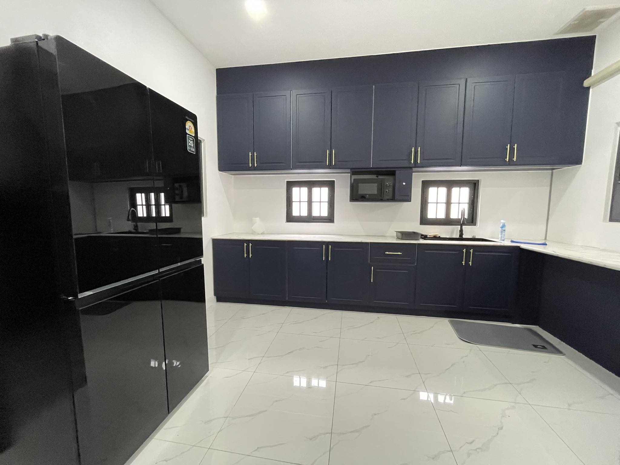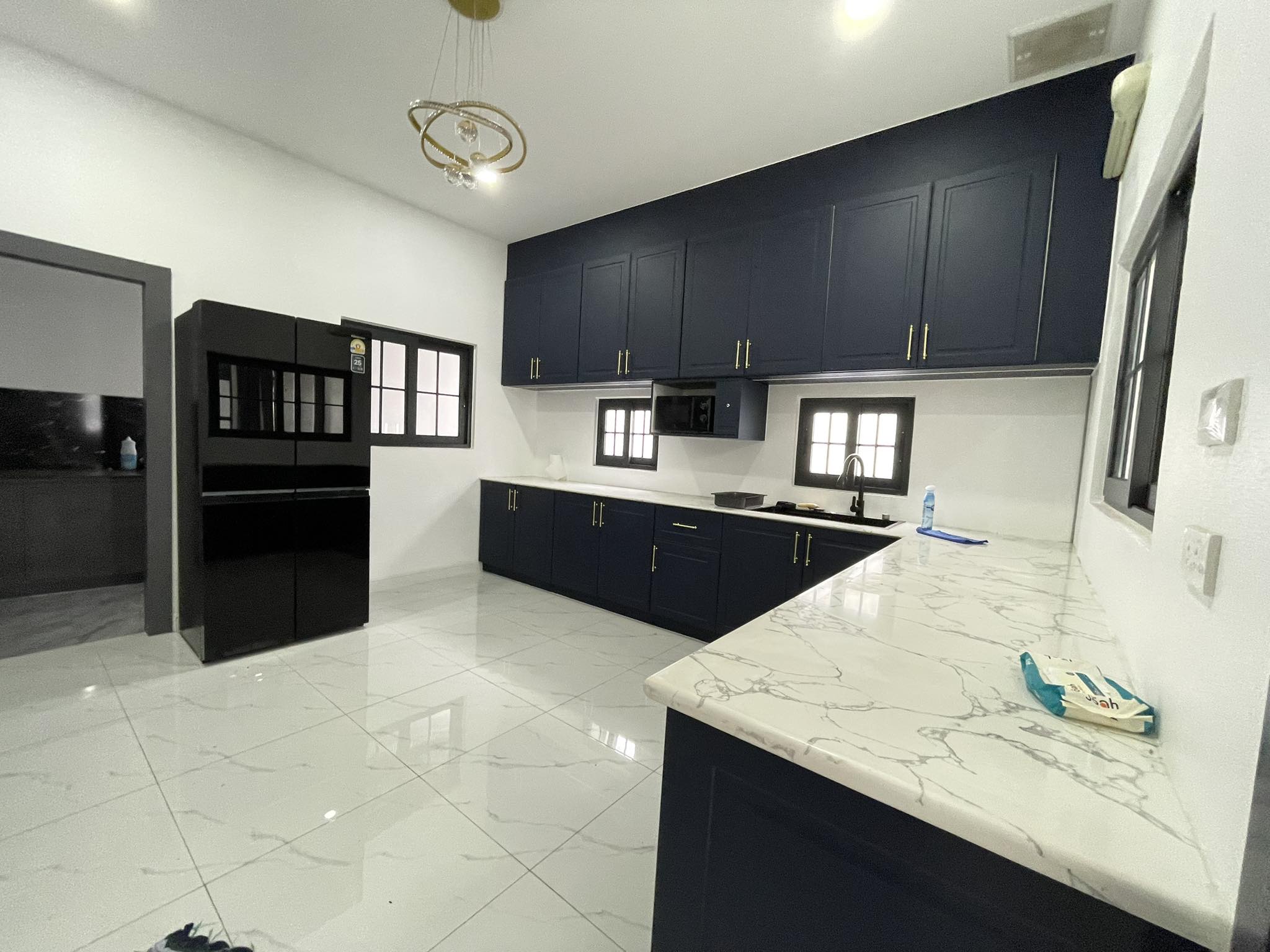 4 bedrooms, 4 bathrooms, living room, kitchen, tile/wooden floor, full furniture, outside toilet, guard house, car parking, fence, Remote gate, Concrete road