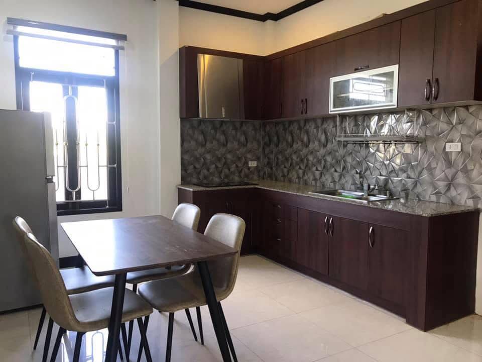 3 bedrooms, 4 bathrooms, 1 living room with dining area, 1 kitchen, 1 washing room, full furnished, tile floor, air conditioners for all the rooms, electric appliance, hot water system, car parking spaces, small garden.