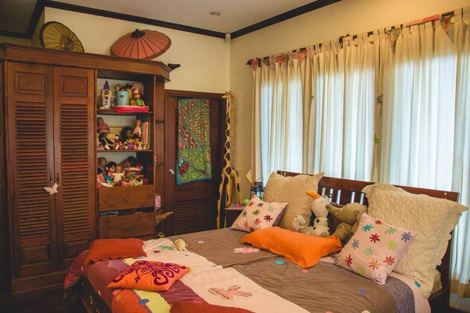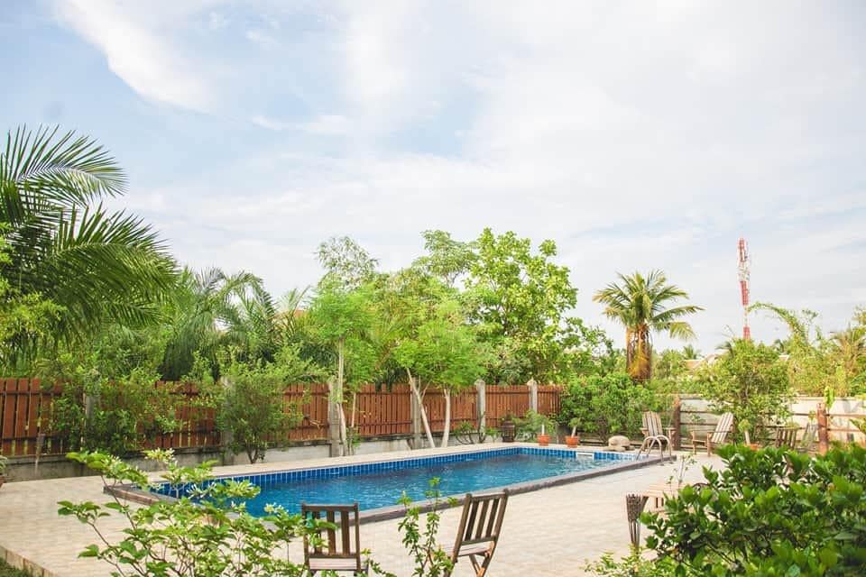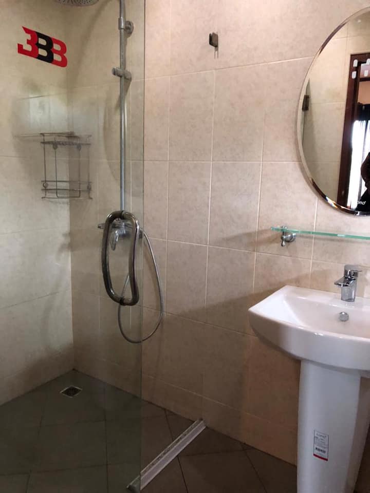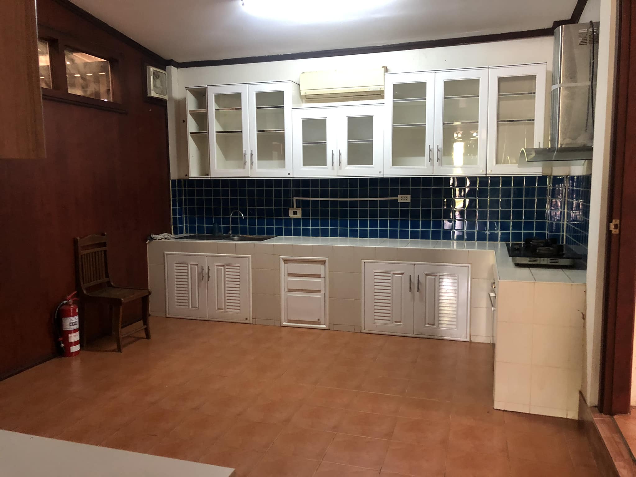 4 bedrooms, 5 bathrooms, 1 working room, 1 living room, 1 family area, 1 main kitchen inside the house, 1 outside kitchen, dining area, balcony, wooden floor, full furnished, nice decoration, large garden, wall, gate.