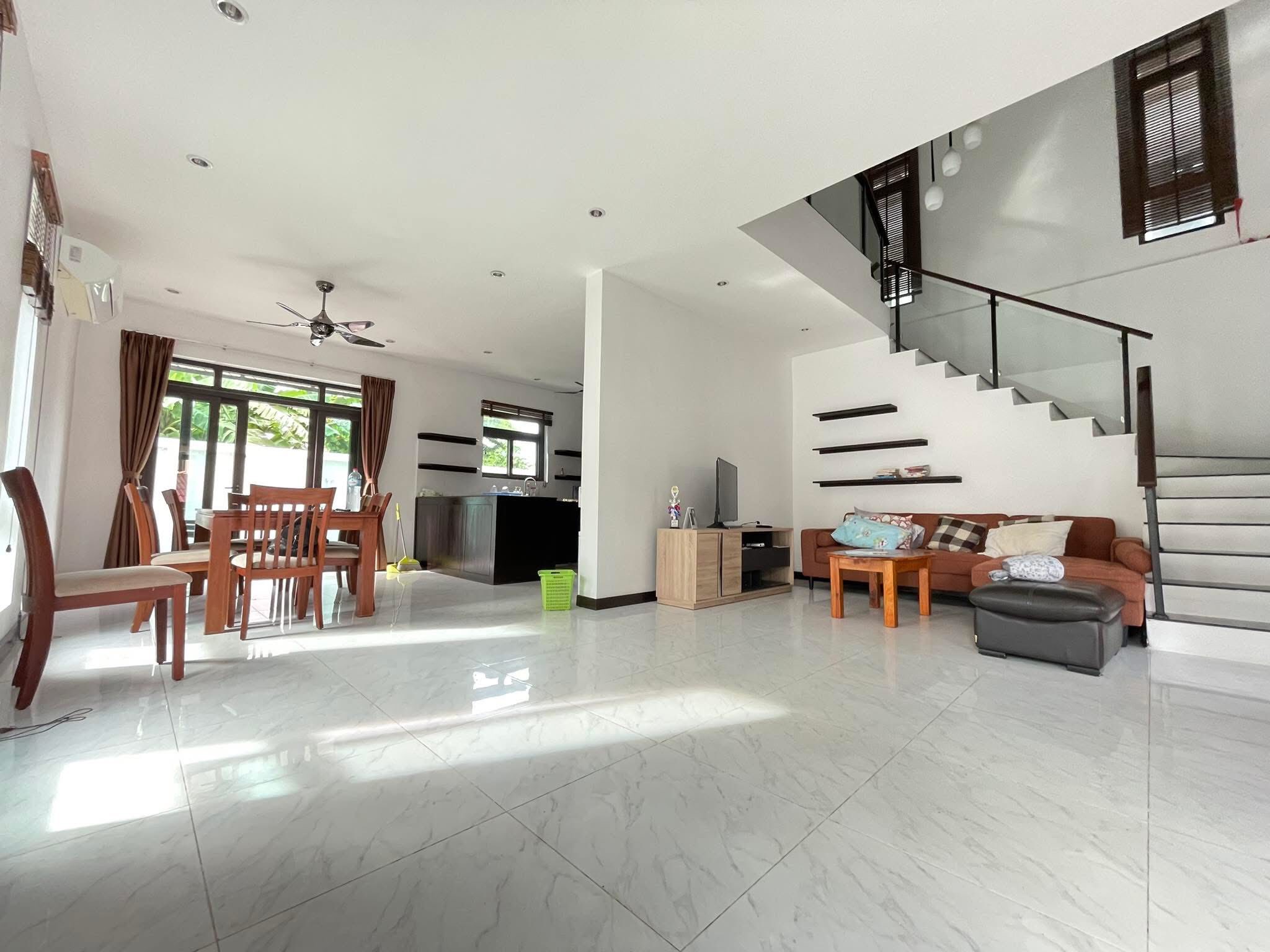 3 bedrooms, 4 bathrooms, 1 living room, dining area, open modern kitchen, dishes washer machine, electric oven, gas cooker, with the furnitures, nice decoration, hot water boiler, shower, washing area, Pantry room, tile floor, High ceiling, Safety wall, electronic gate, small garden, good access road