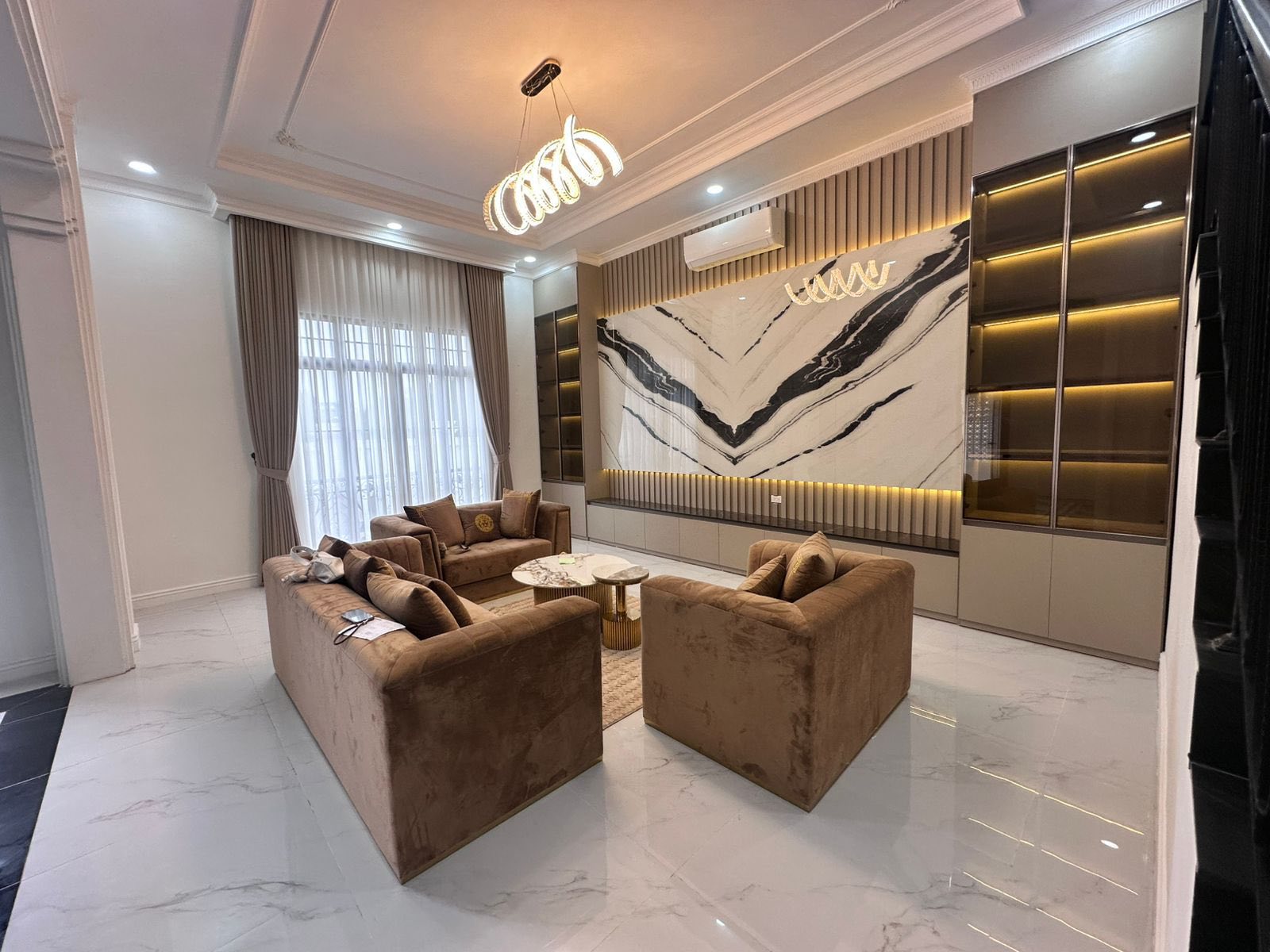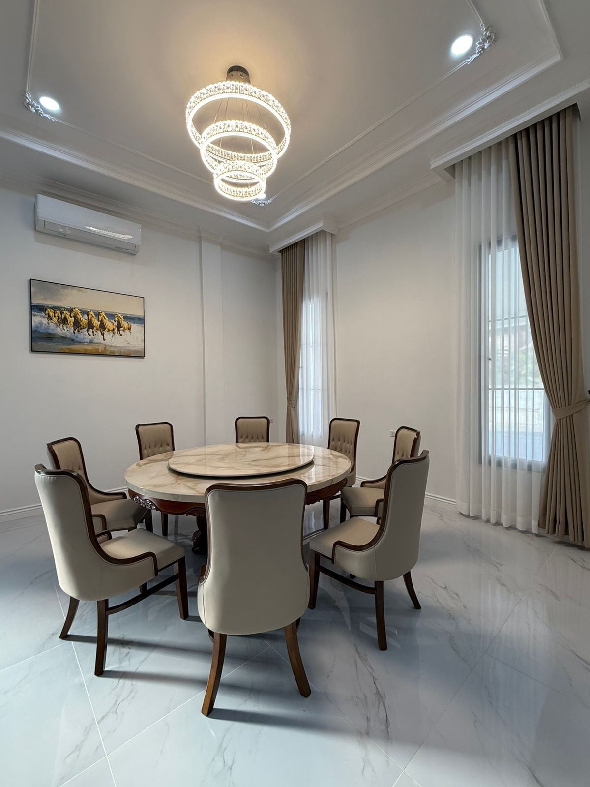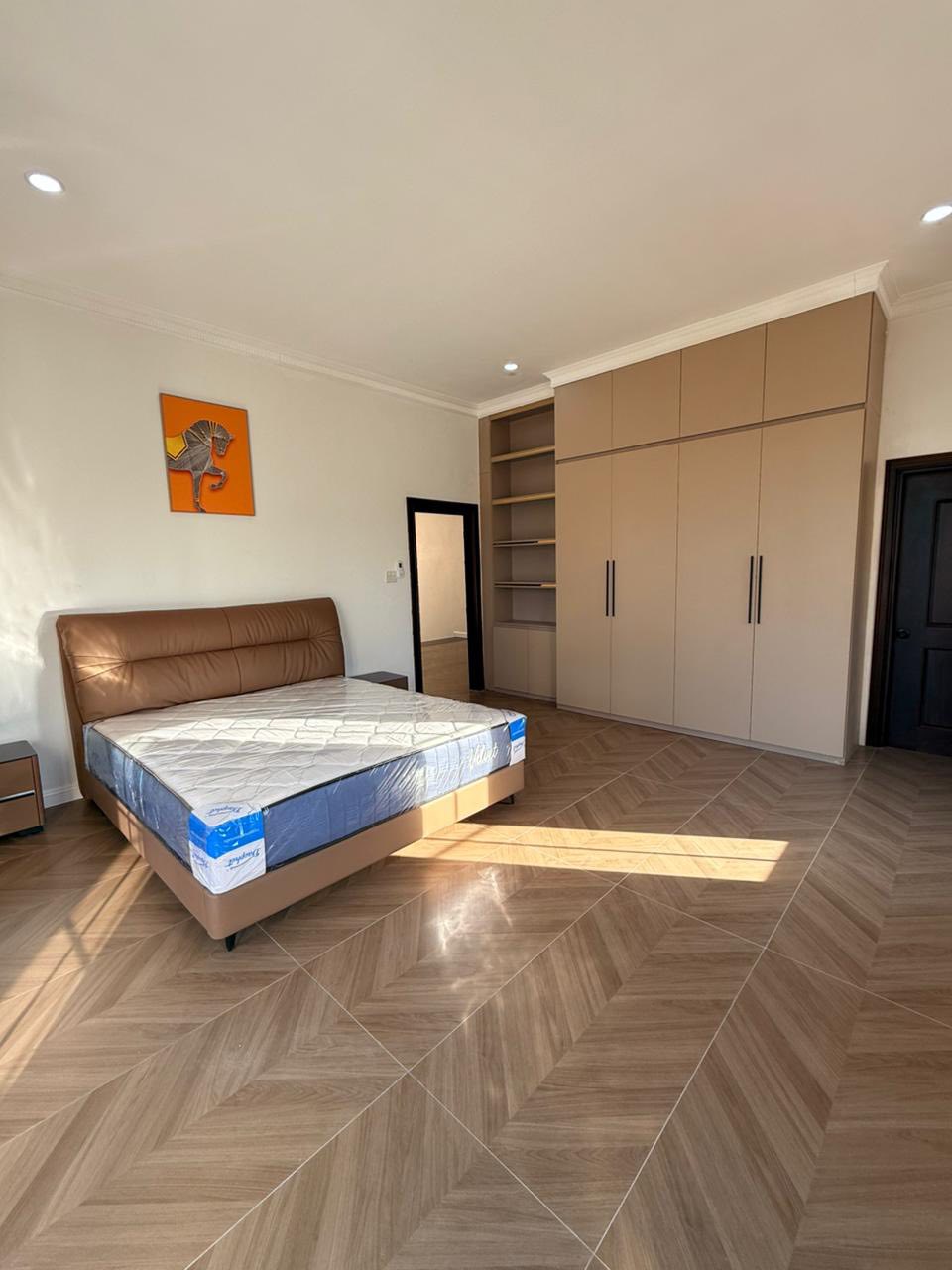 5 bedrooms, 6 bathrooms, living room, kitchen, tile/wooden floor, full furniture, outside toilet, guard house, car parking, fence, Remote gate, Concrete road