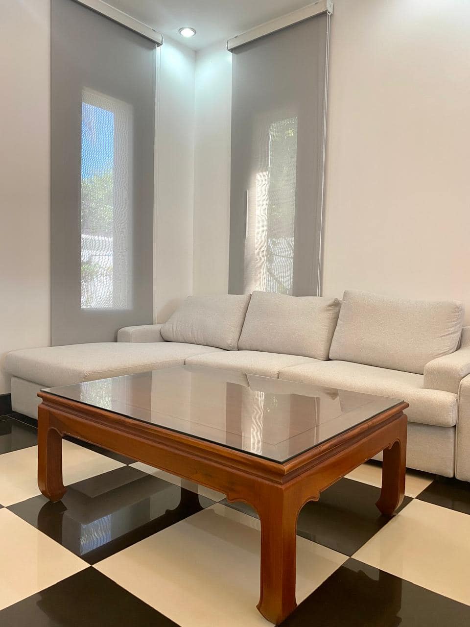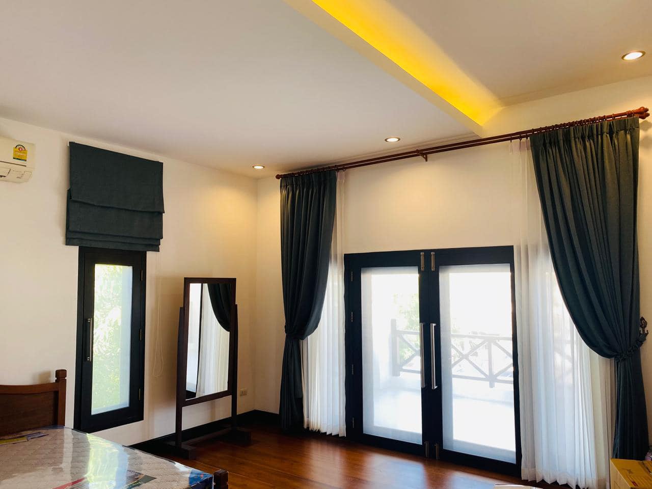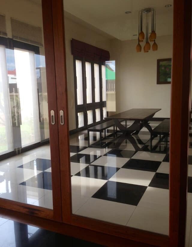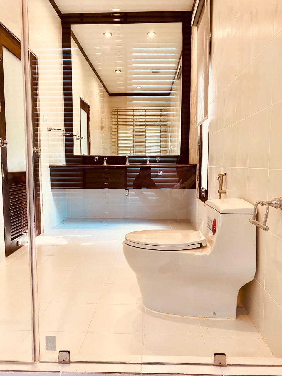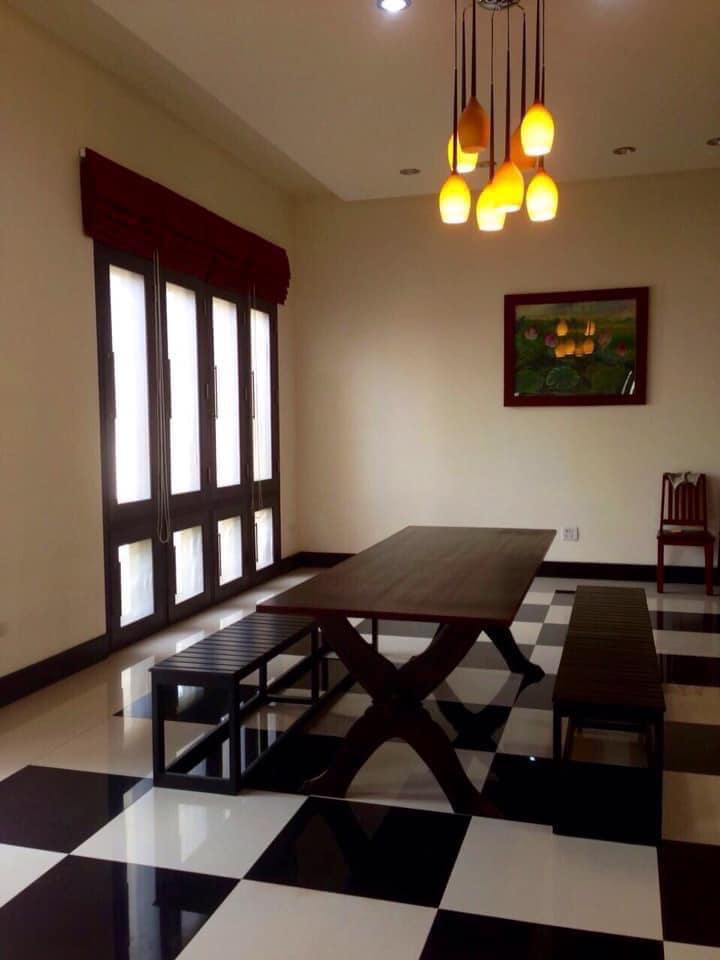 - 4 bedrooms, 5 bathrooms, 1 working room, 1 living room, 1 family room, 1 dining room, 1 western kitchen, 1 outside kitchen, 1 storage room, 1 outside toilet, 1 maid room, full furniture, nice decoration house, electronic appliance, AC for all rooms, hot water, shower/ bathtub, tile floor, high ceiling, car parking spaces, gate, fence
