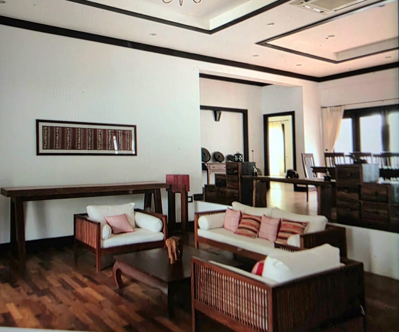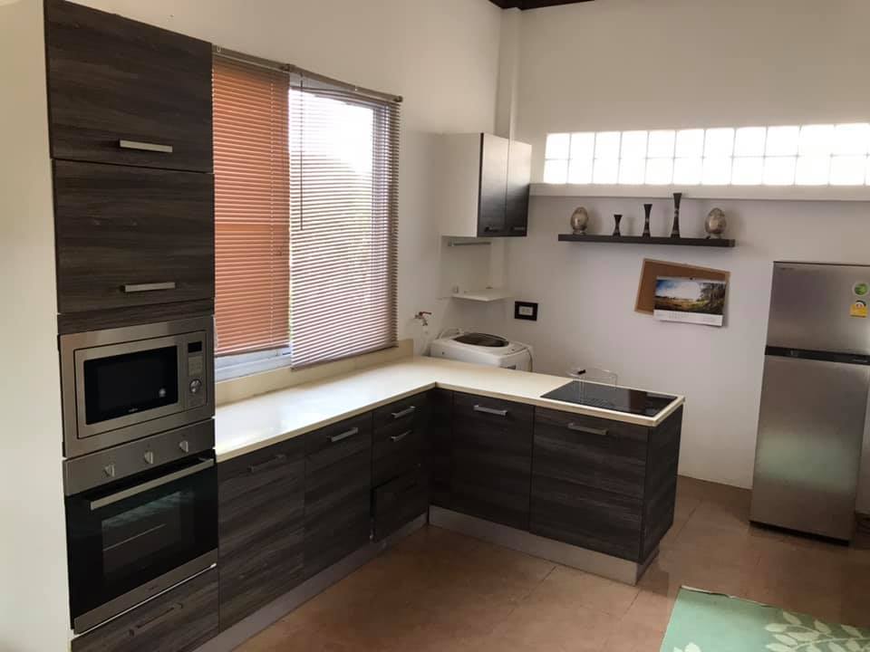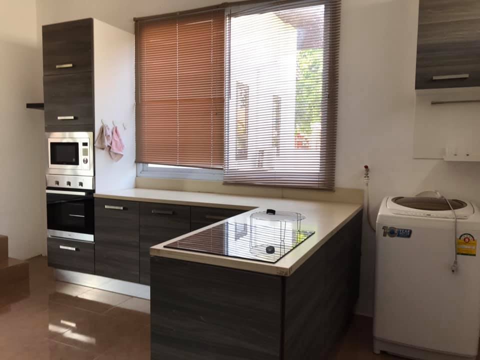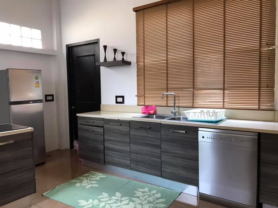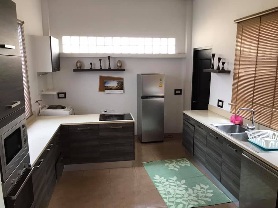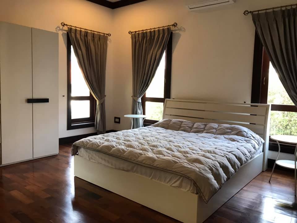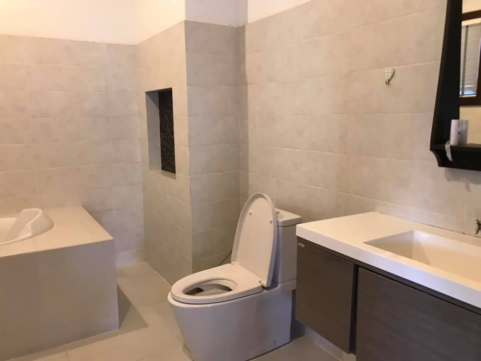 3 bedrooms, 4 bathrooms, 1 large living room, 1 dining room, 1 kitchen, washing area, with the furnitures, air conditioners for all rooms, nice decoration, counter bar, modern kitchen, electronic oven, electric appliance, wooden floor, private gate, wall, garden, car parking spaces.