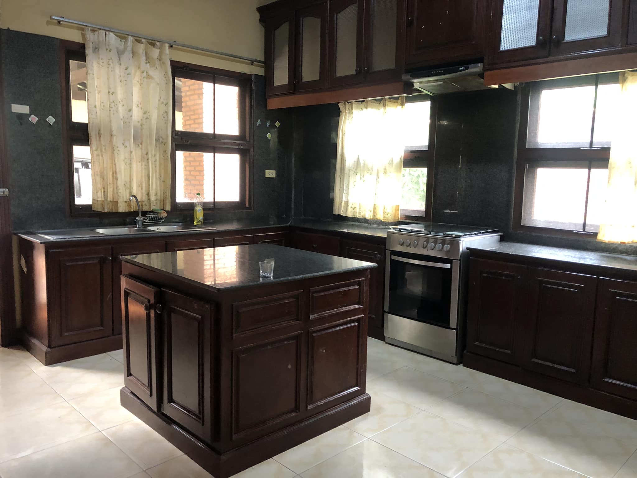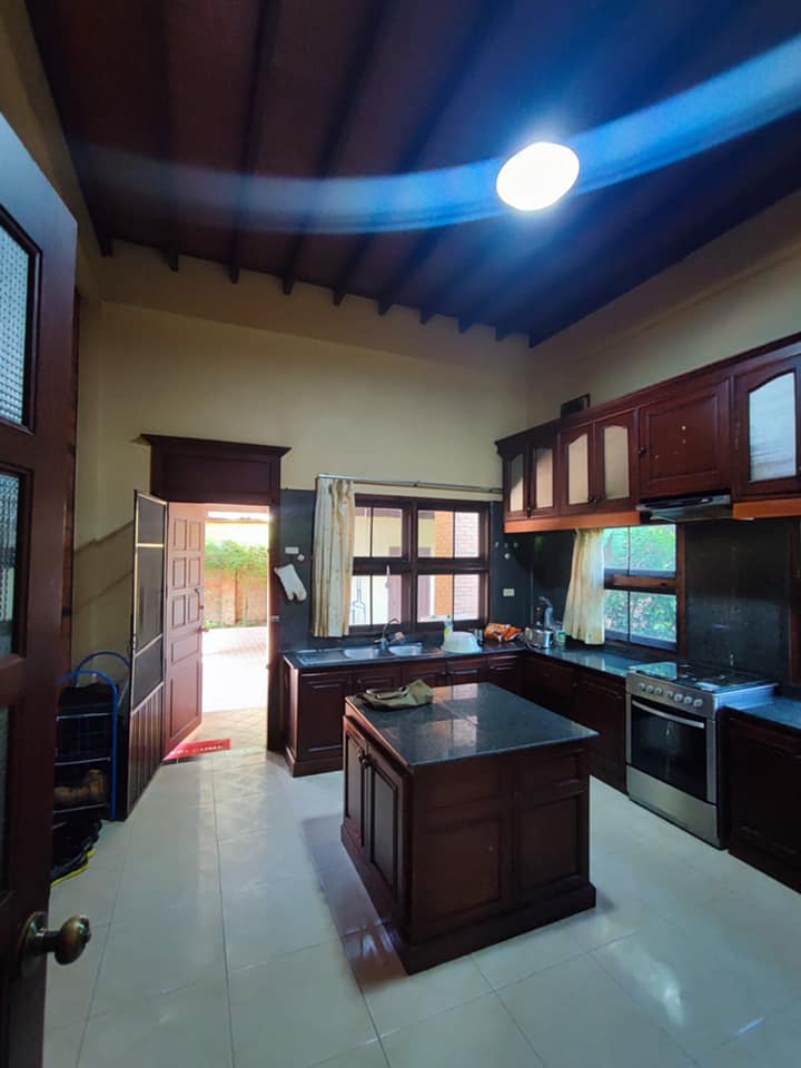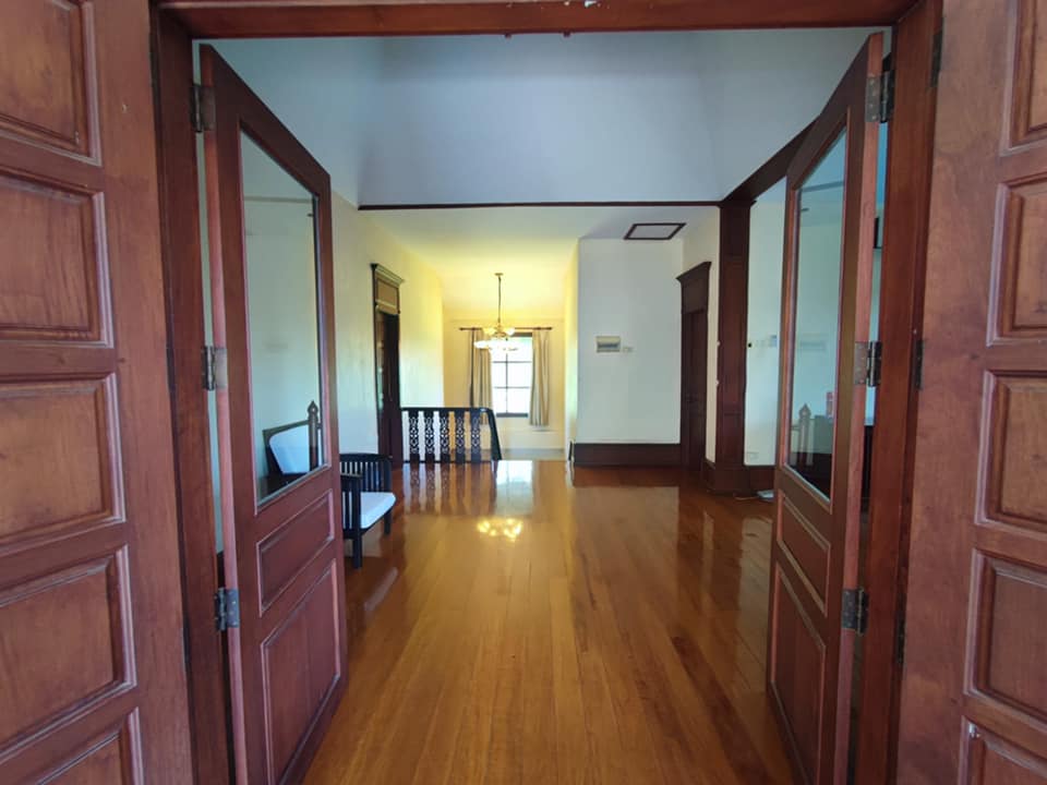 - 4 bedrooms, 4 bathrooms, bathtub/ shower, 1 living room, 1 dining room, 1 modern kitchen, gas cooker, electric oven, 1 washing room, 1 outside toilet, storage room, AC for all the rooms, with the furnitures, wooden floor, terrace, 5 cars parking, garden, wooden fence, gate, swimming pool