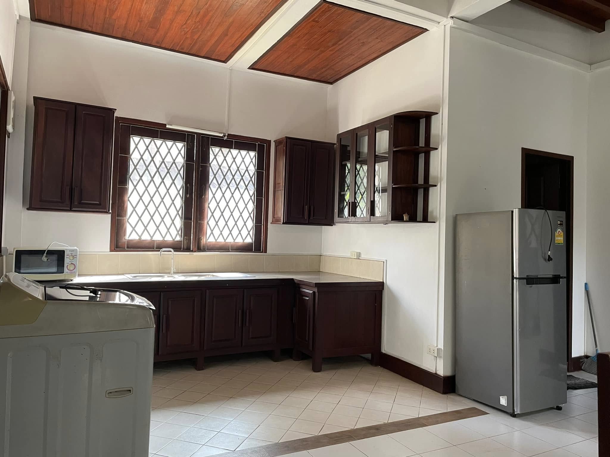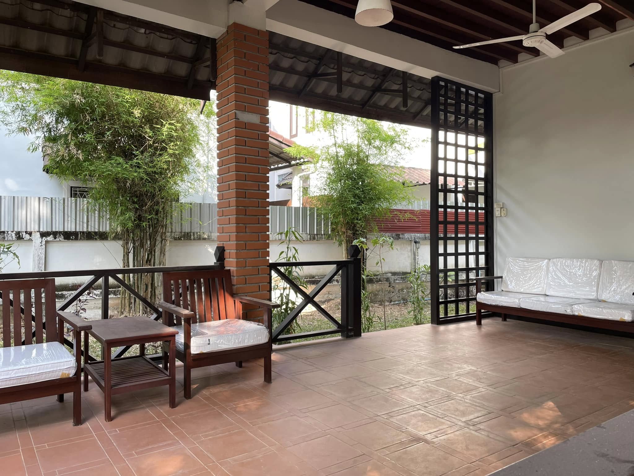 - 3 bedrooms, 3 bathrooms, shower/ bathtub, 1 living room, 1 Sitting room upstairs, open kitchen, washing area, with basic furnitures, hot water, wooden/ tile floor, balcony, small garden, 2 car parking, wall, gate.
