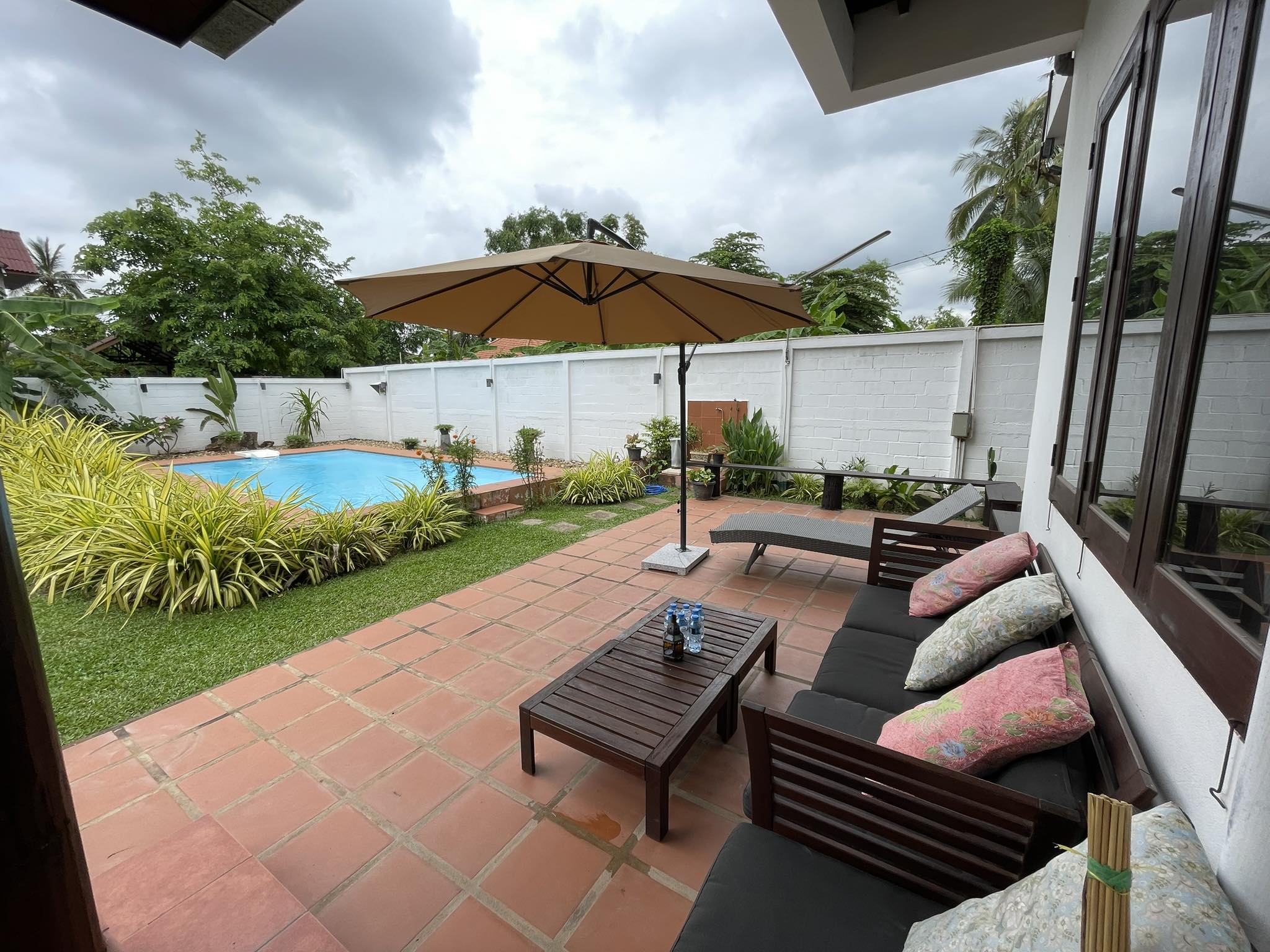 - Address: Western house with the pool near Suanmone market - Price (includes swimming pool, Gardener, Garbage collection fees)