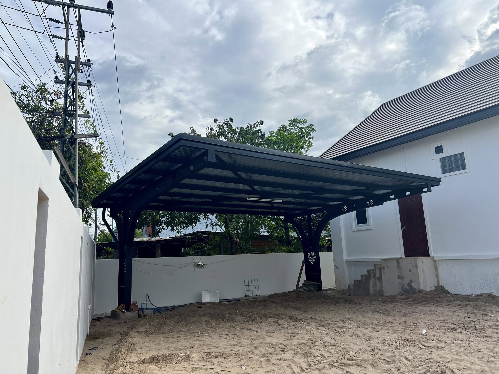 - There are 3 bedrooms, 3 bathrooms, living room, dining area, Kitchen, full function of kitchen equipment, Full furnished, tile floor, AC for all the rooms, yard, nice decoration, car parking spaces, wall, fence, electric Gate.
