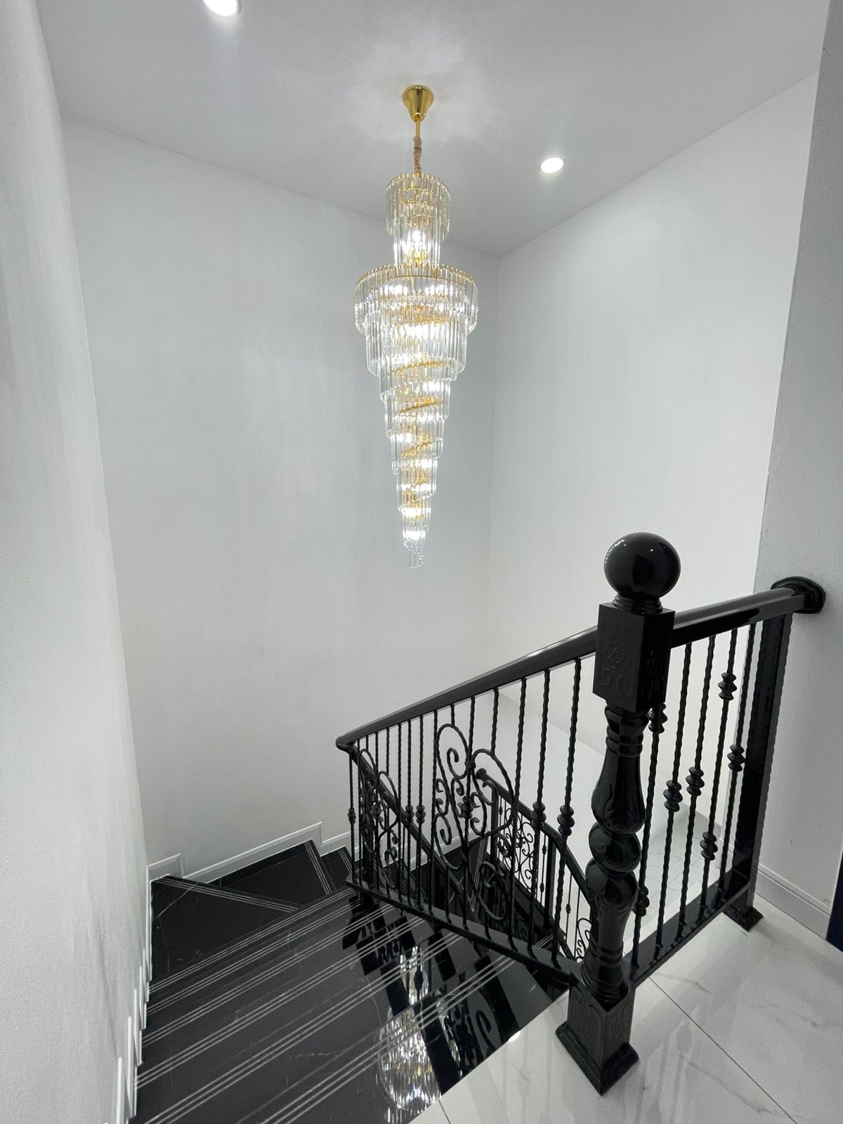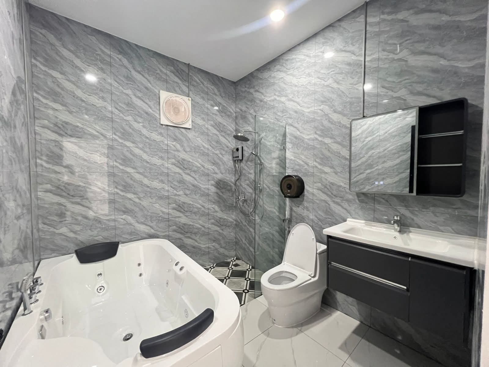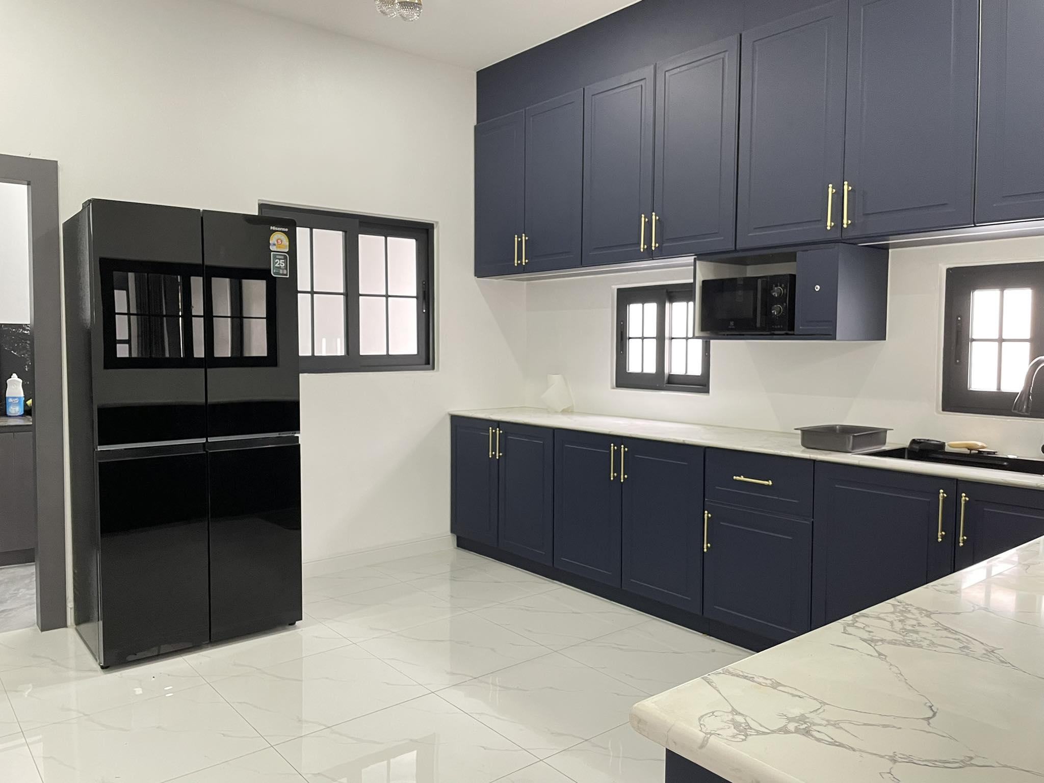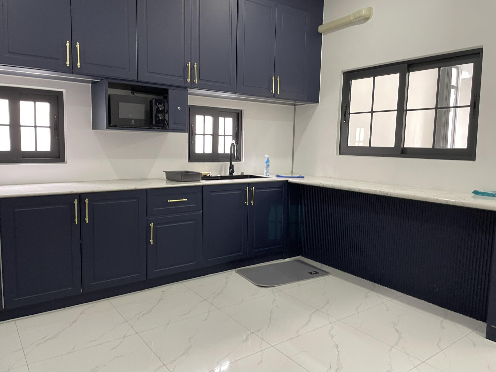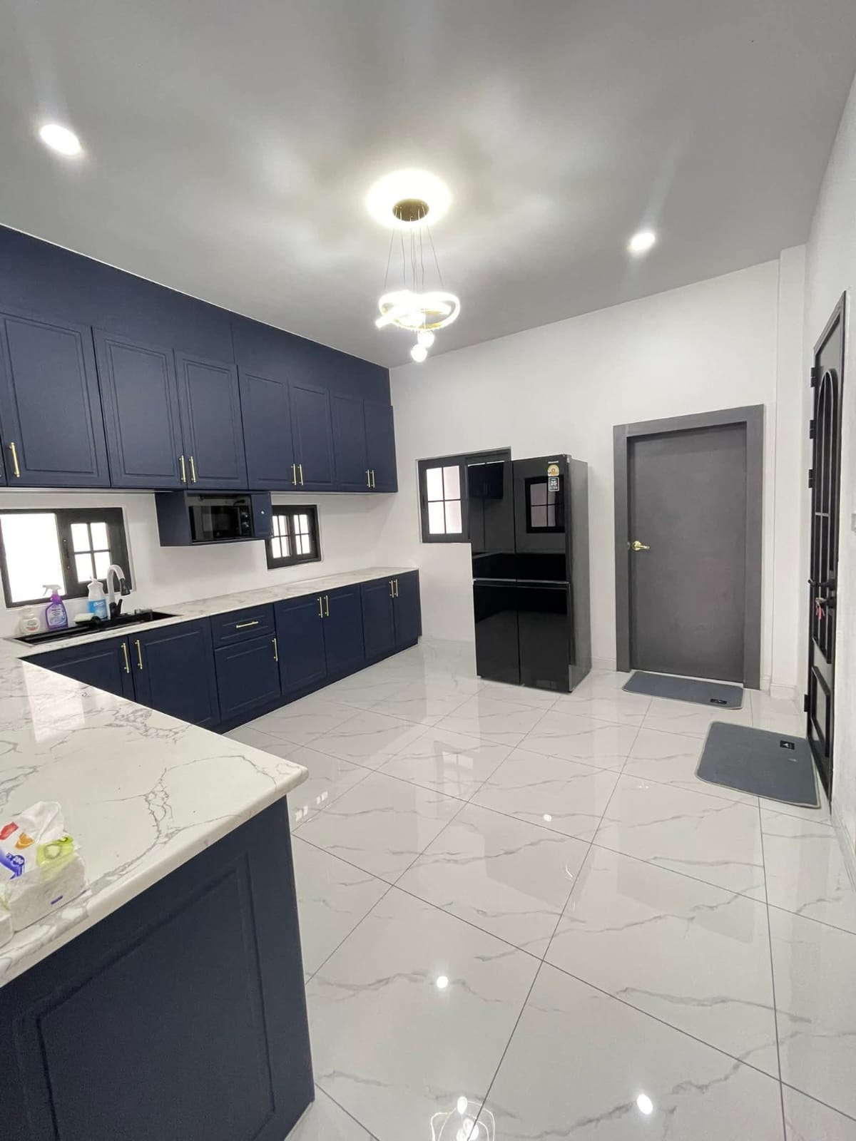 4 bedrooms, 4 bathrooms, living room, kitchen, tile/wooden floor, full furniture, outside toilet, guard house, car parking, fence, Remote gate, Concrete road