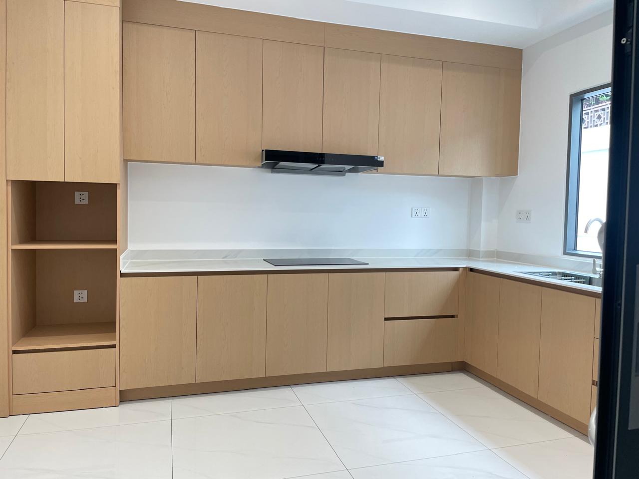 + Number of rooms : 3 bedrooms, 4 bathrooms, 1 living room, 1 dining area, 1 modern kitchen, tile floor, hot water, shower, electric appliances, electric gate