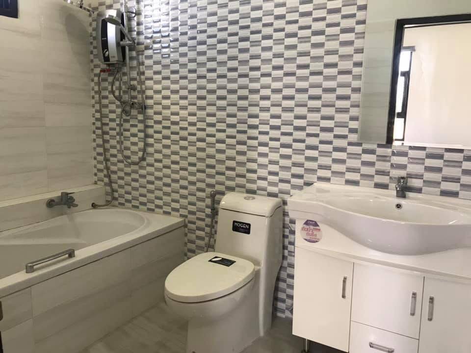 3 bedrooms, 4 bathrooms, 1 living room with dining area, 1 kitchen, 1 washing room, full furnished, tile floor, air conditioners for all the rooms, electric appliance, hot water system, car parking spaces, small garden.